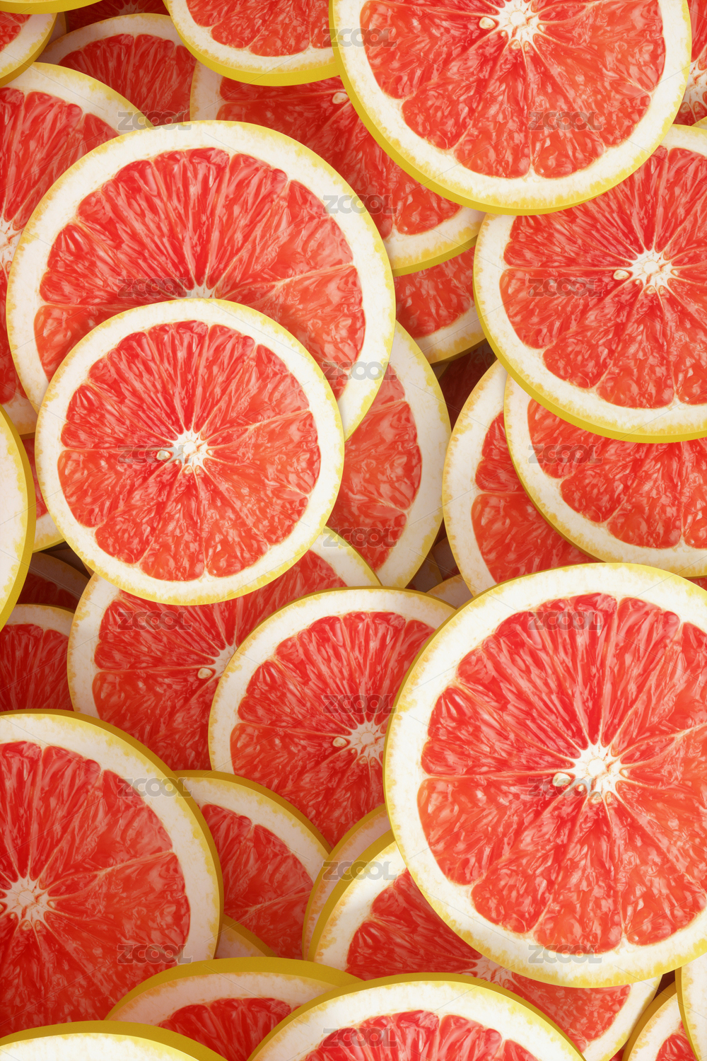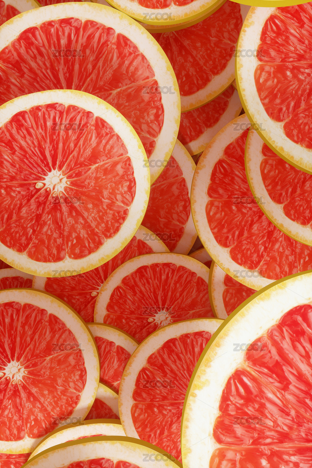 隨機(jī)排列的多個(gè)西柚切片的特寫鏡頭