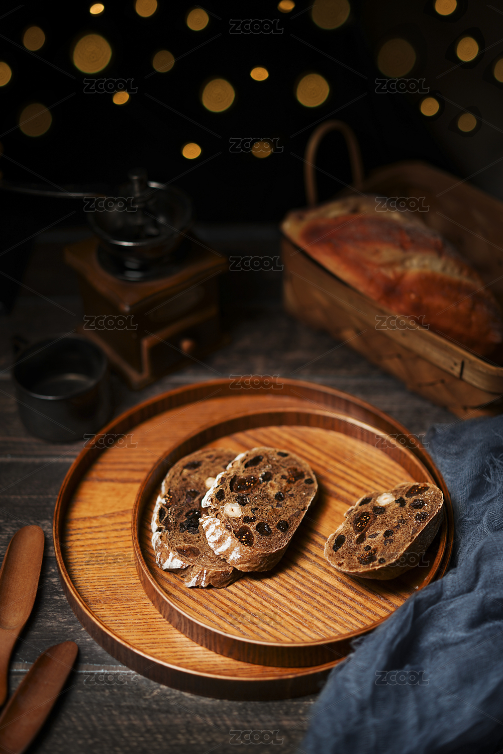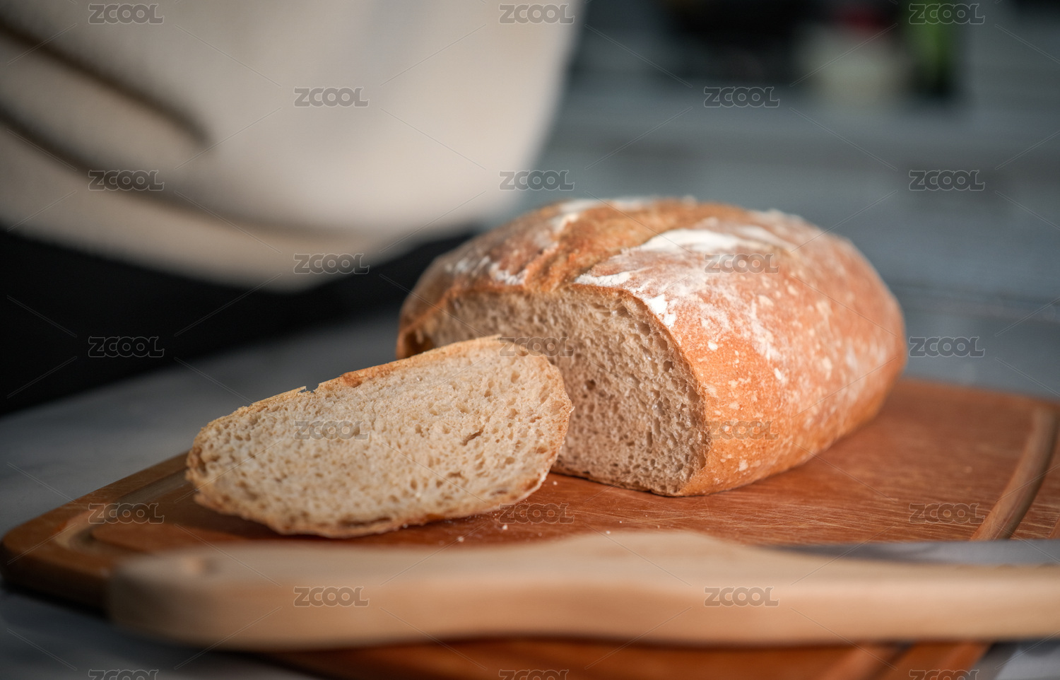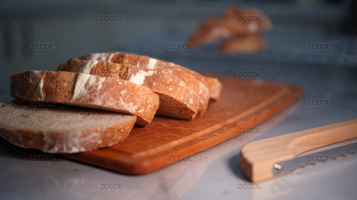 木板上的面包與切片