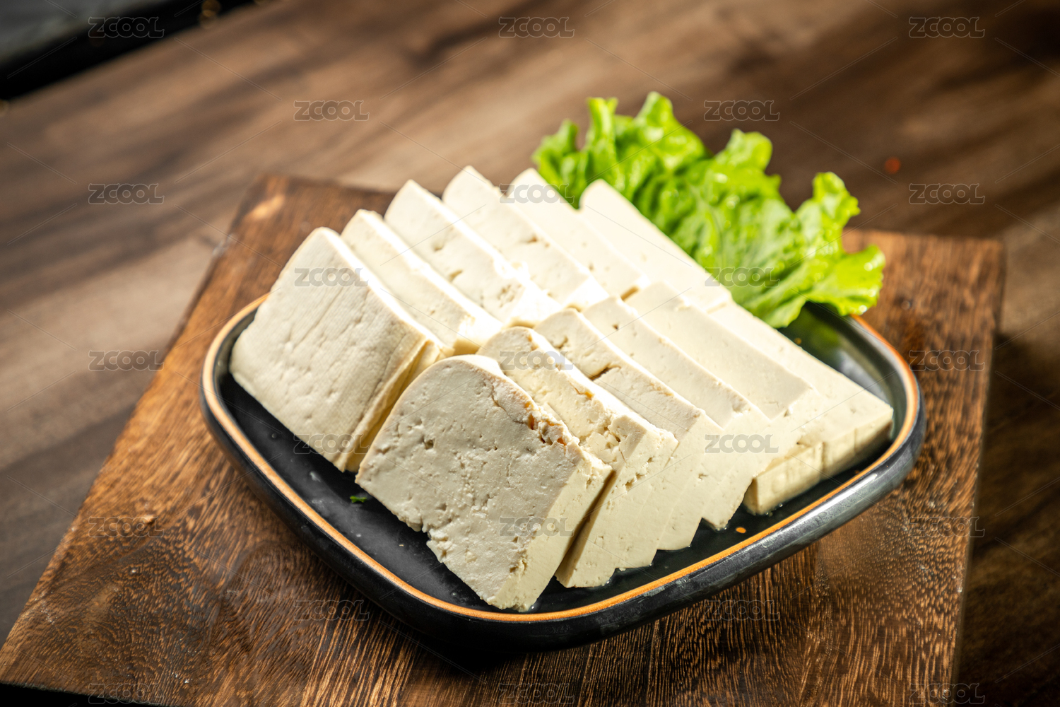 桌上有一盤北豆腐切片