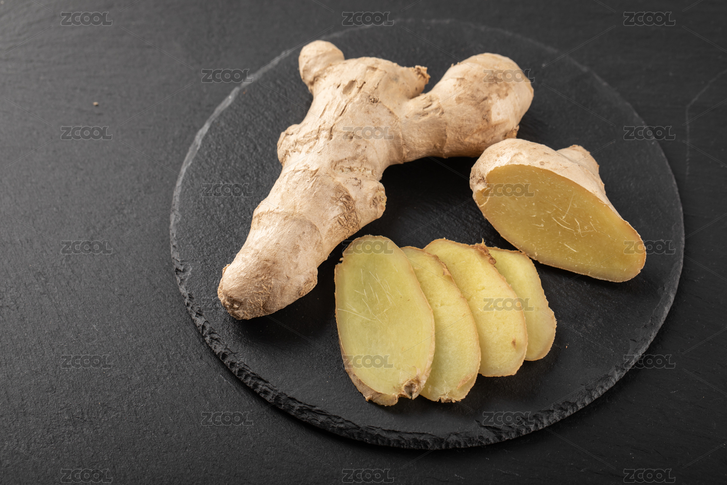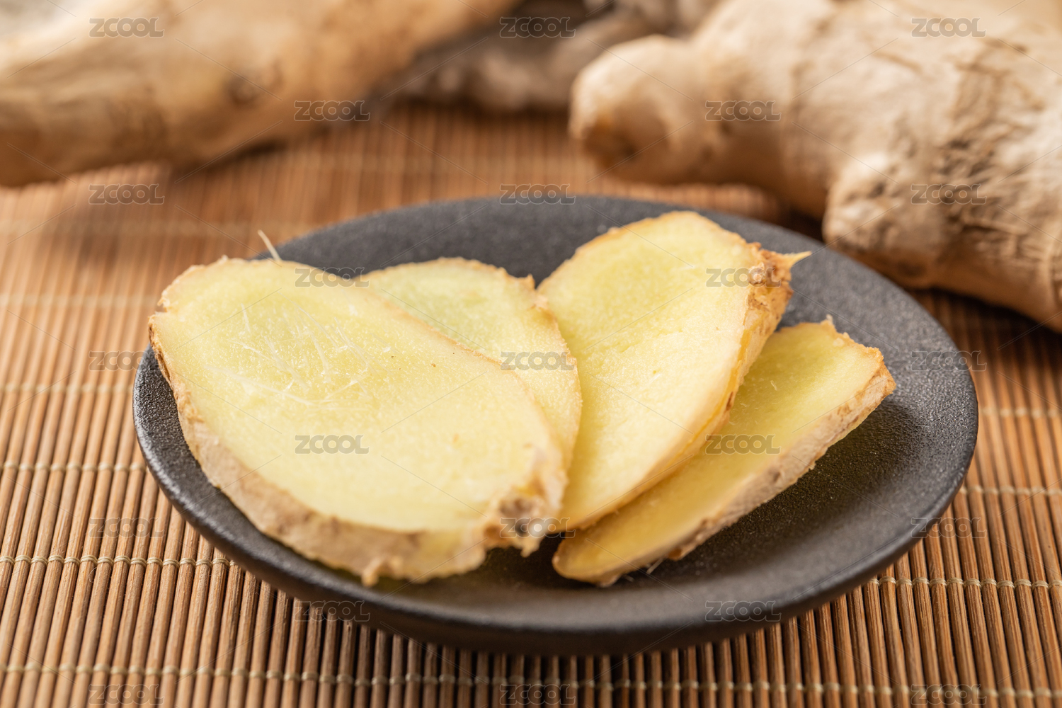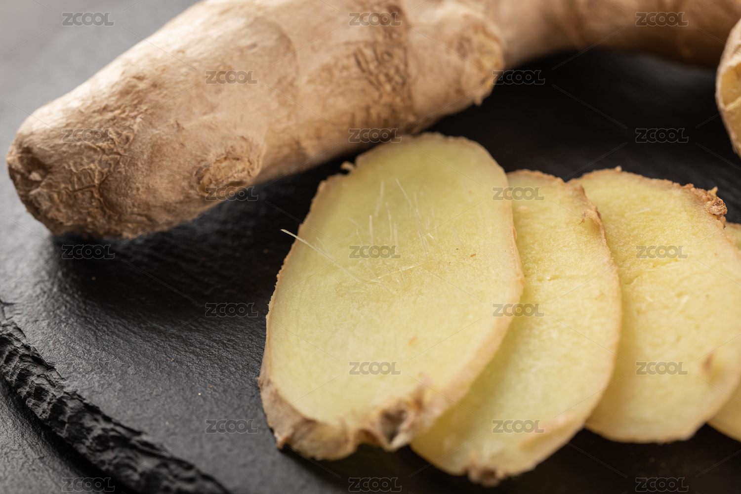天然食材香料生姜與生姜切片