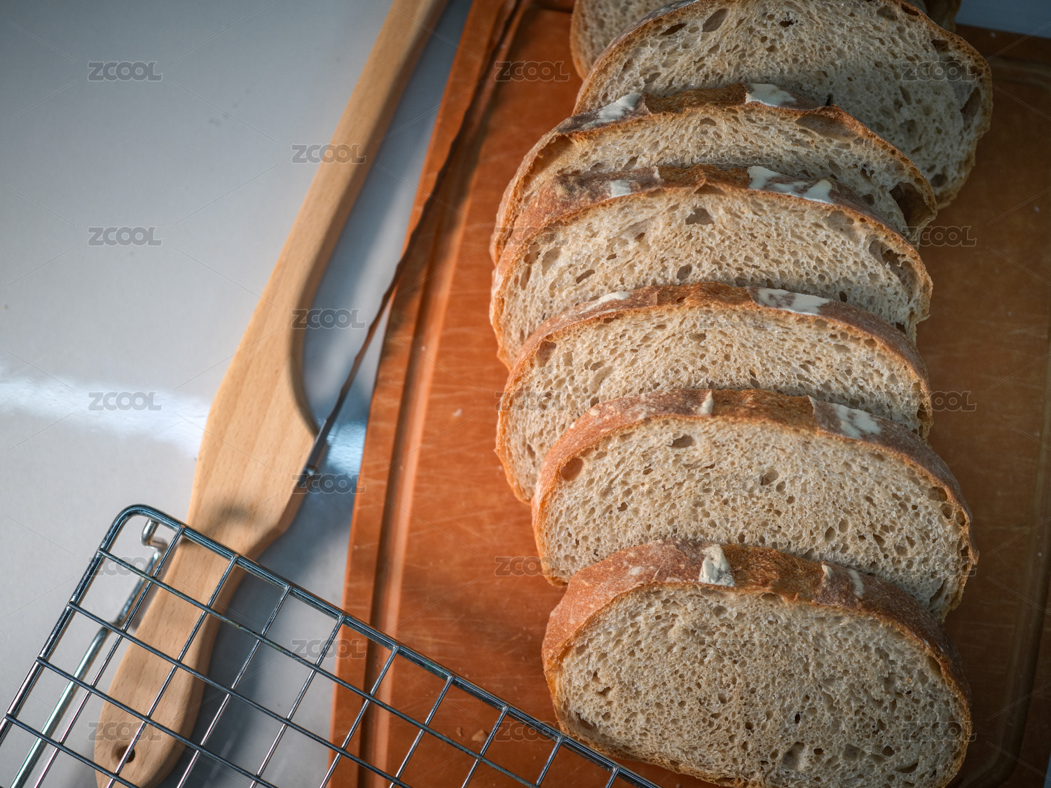 木砧板上的切片面包