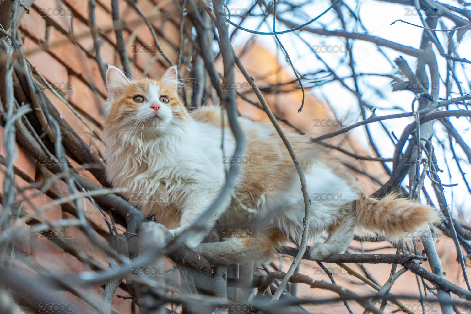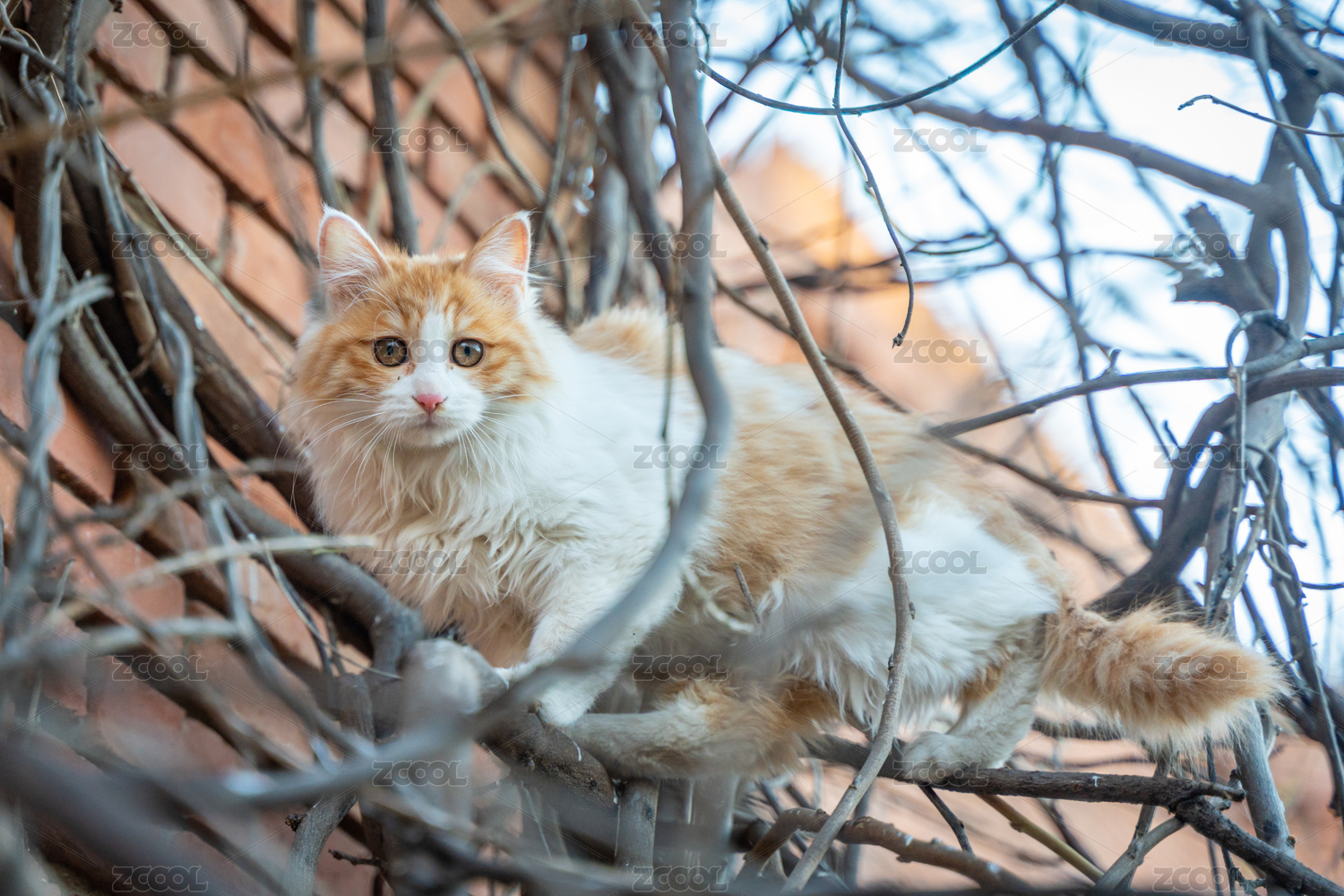 戶外樹枝上的長毛貓寵物貓