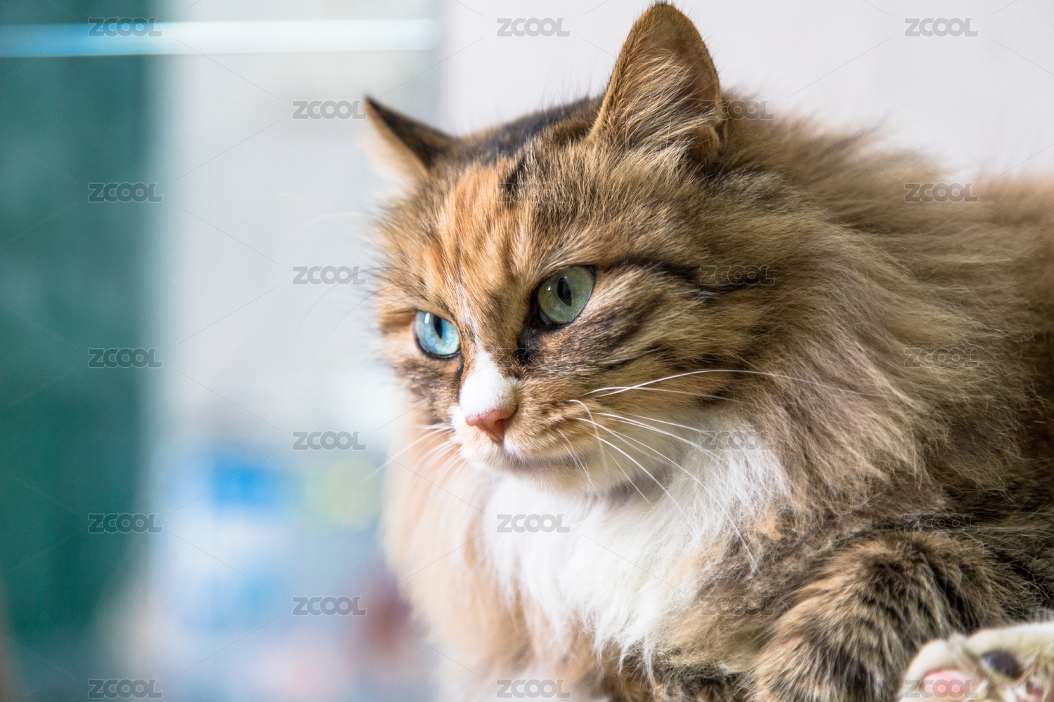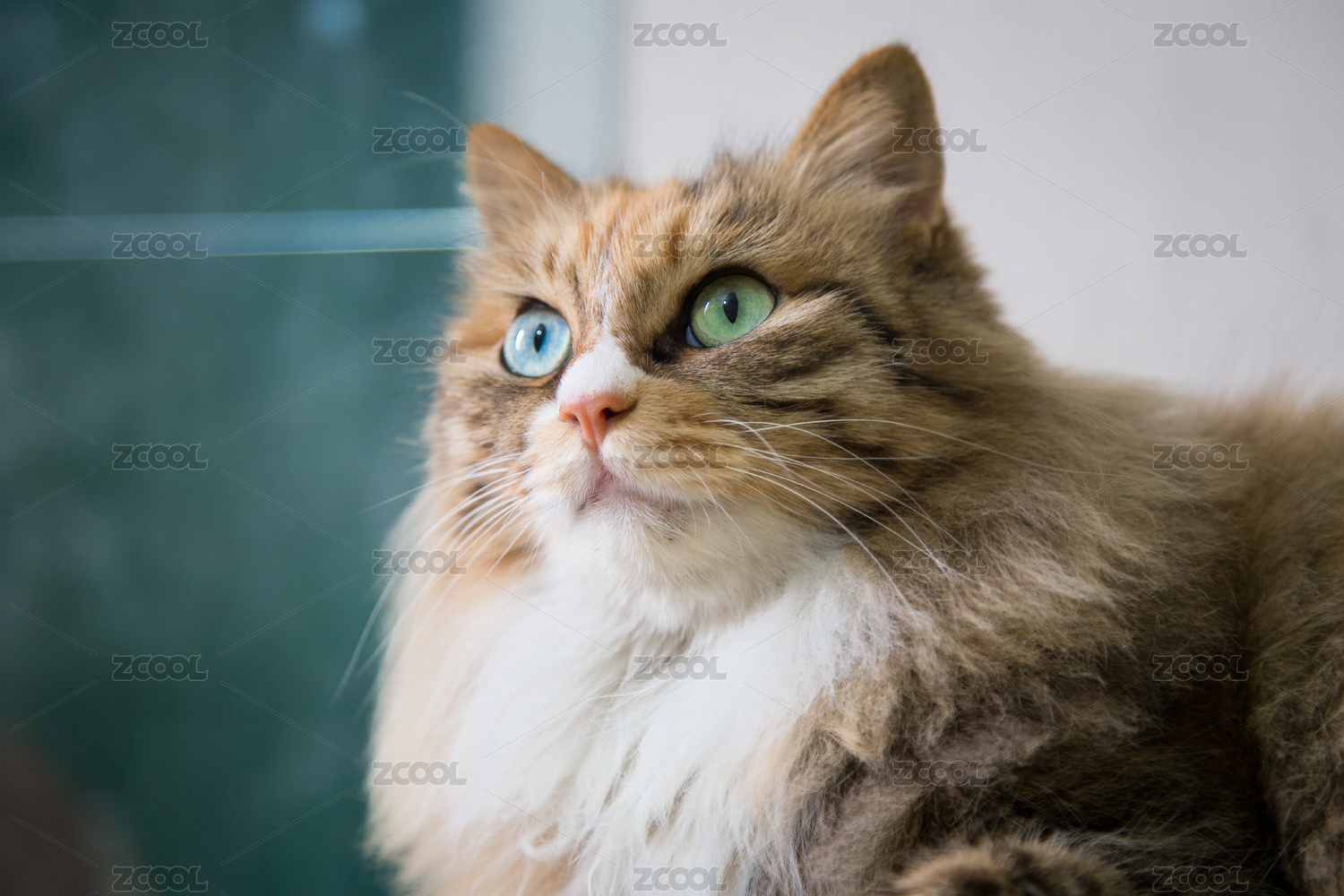 長毛貓可愛照片,迷人眼睛凝視瞬間