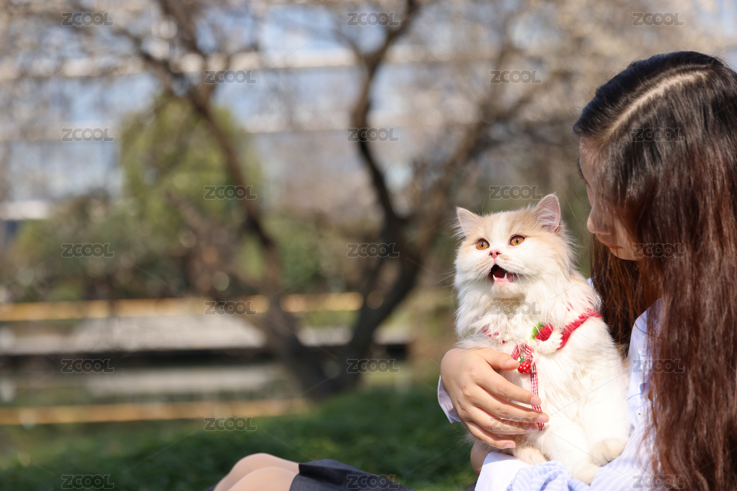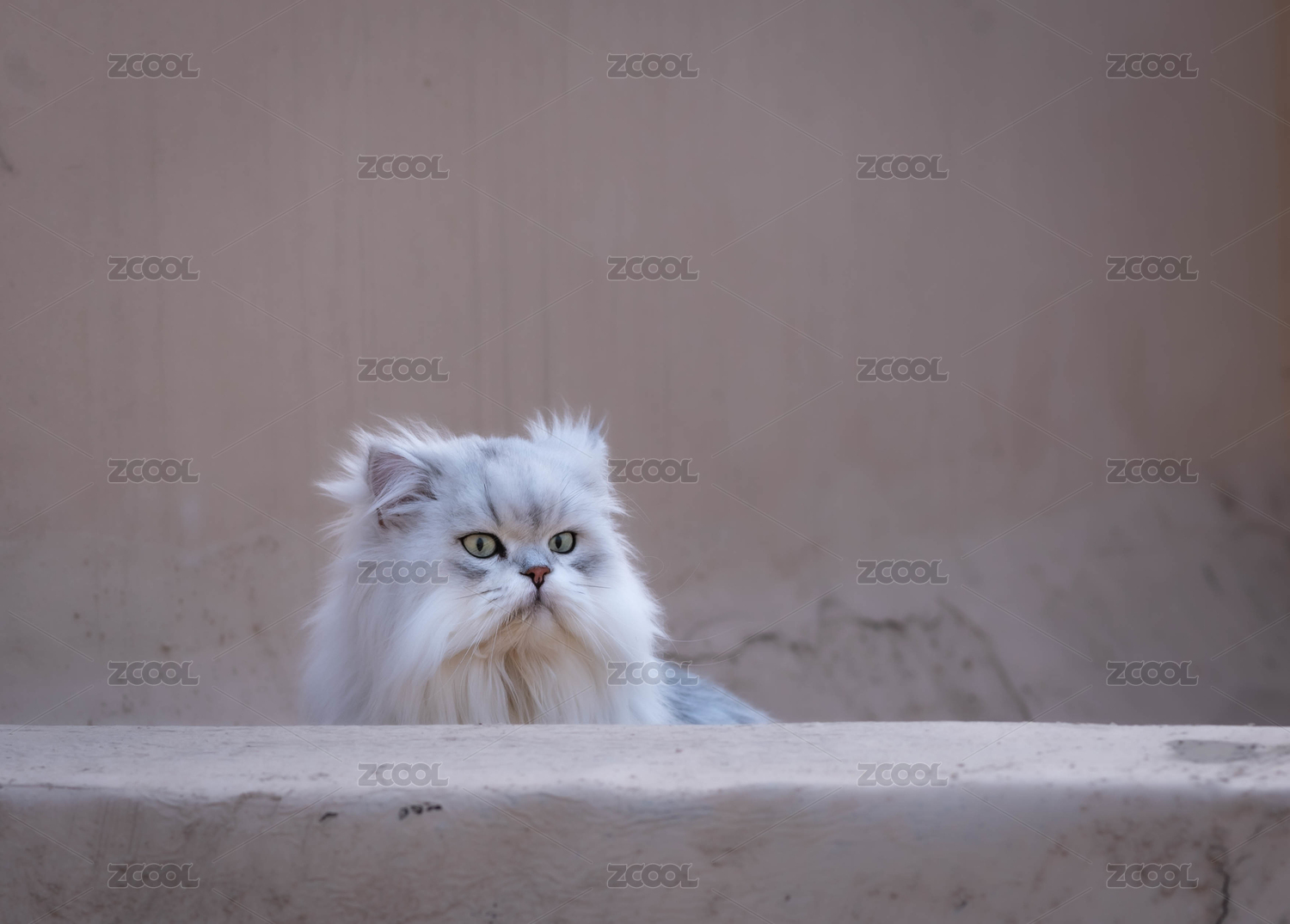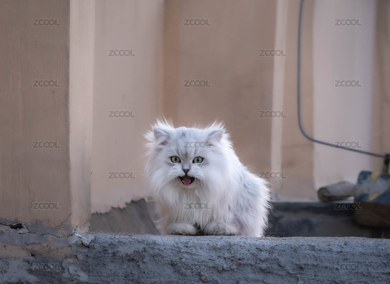 一只趴在臺(tái)階上叫的金吉拉長毛貓