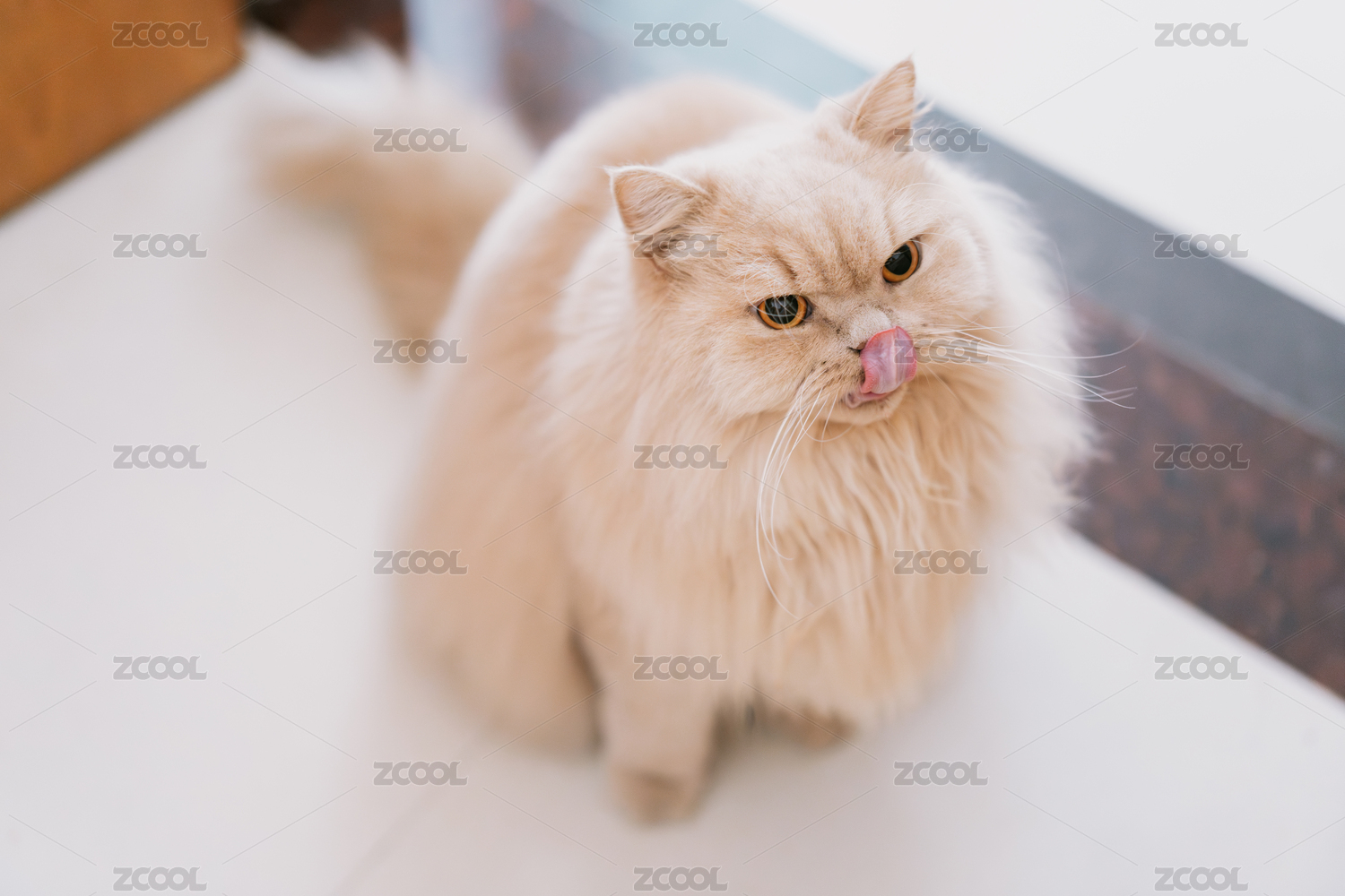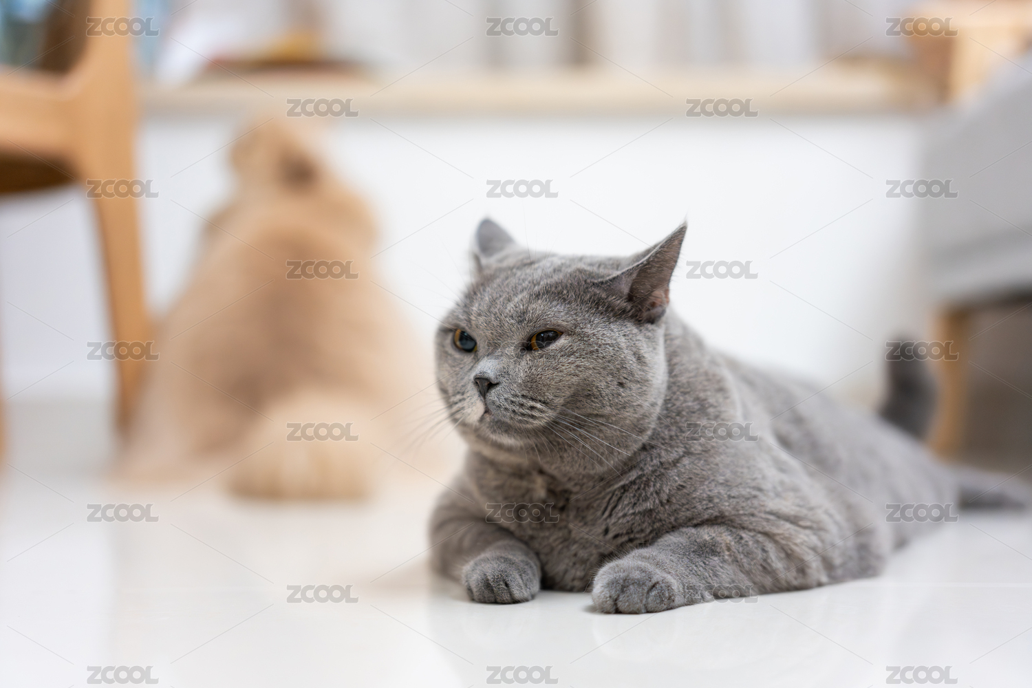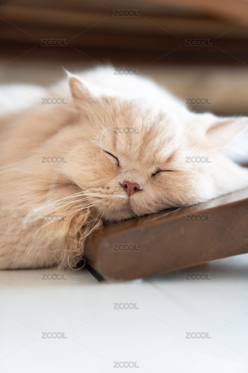 室內(nèi)環(huán)境,英國長毛貓靠著茶幾腳睡覺