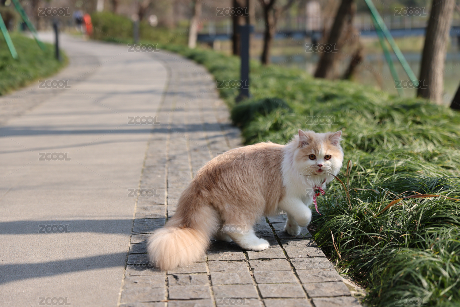 一只在路上行走的英國長毛貓
