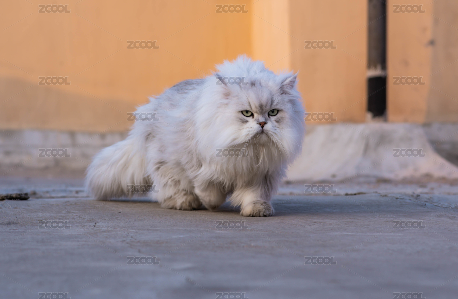 一只冷酷向前走的金吉拉長毛貓