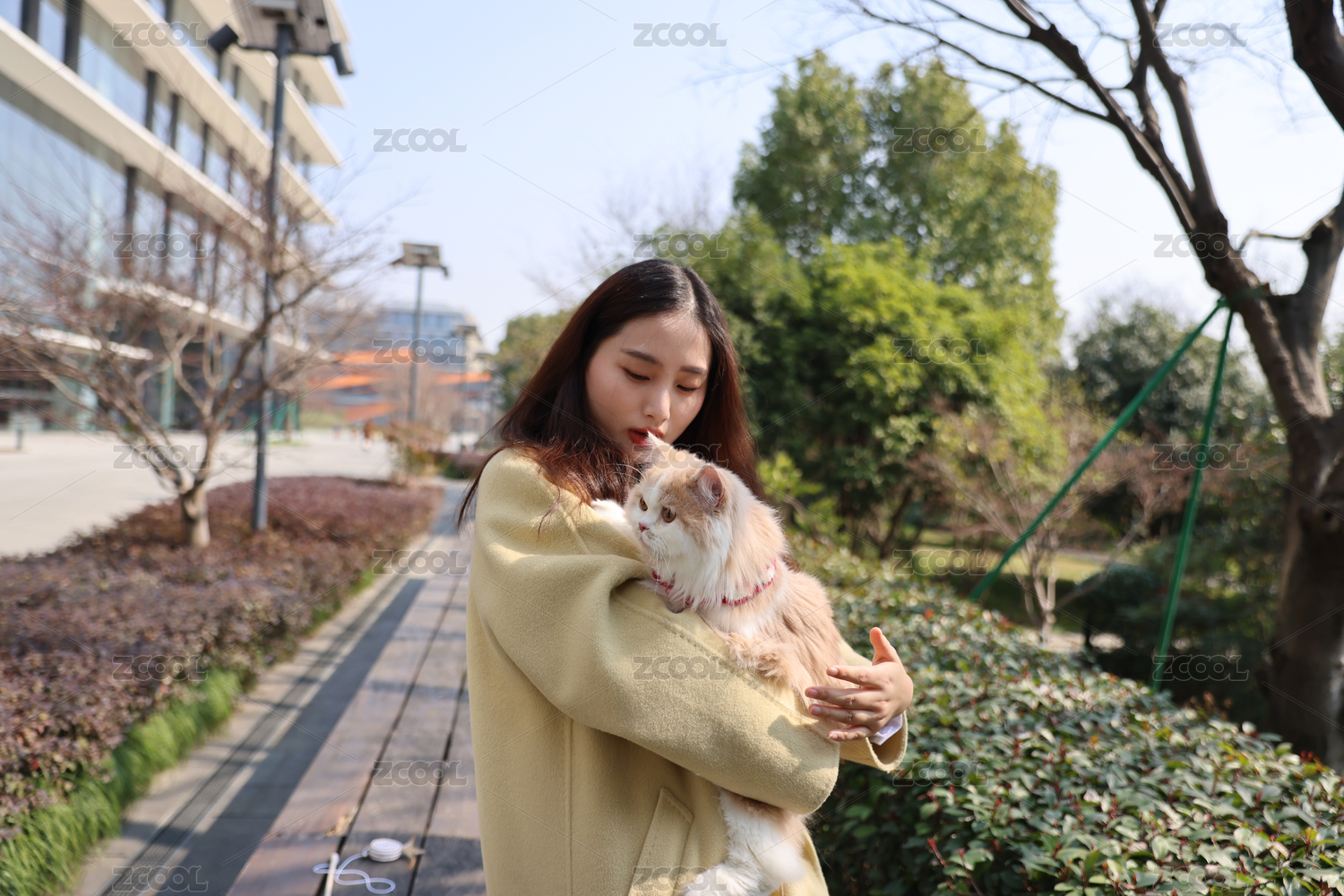 一個(gè)美女與寵物英國長毛貓的溫馨互動(dòng)