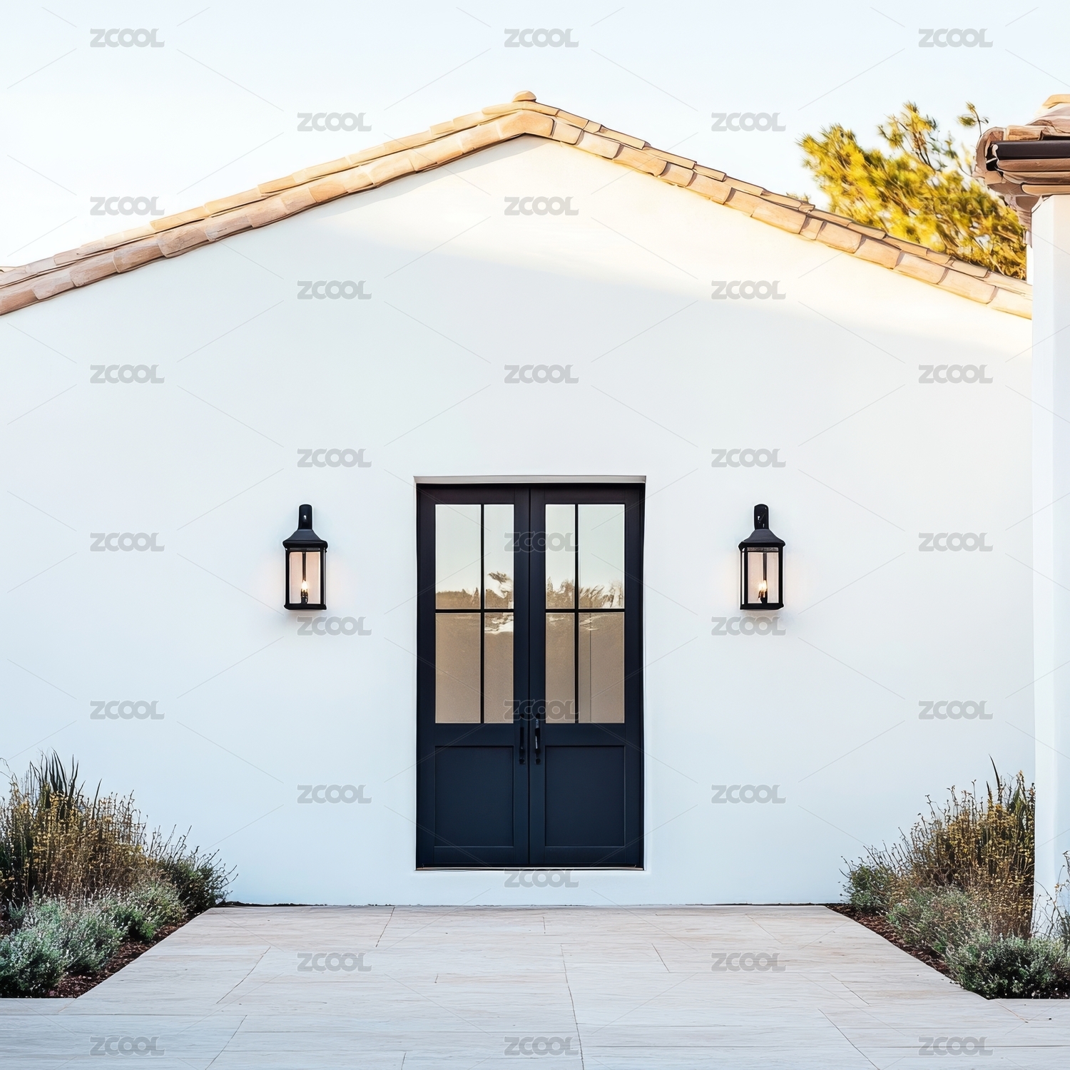 白色建筑前的深色雙開門