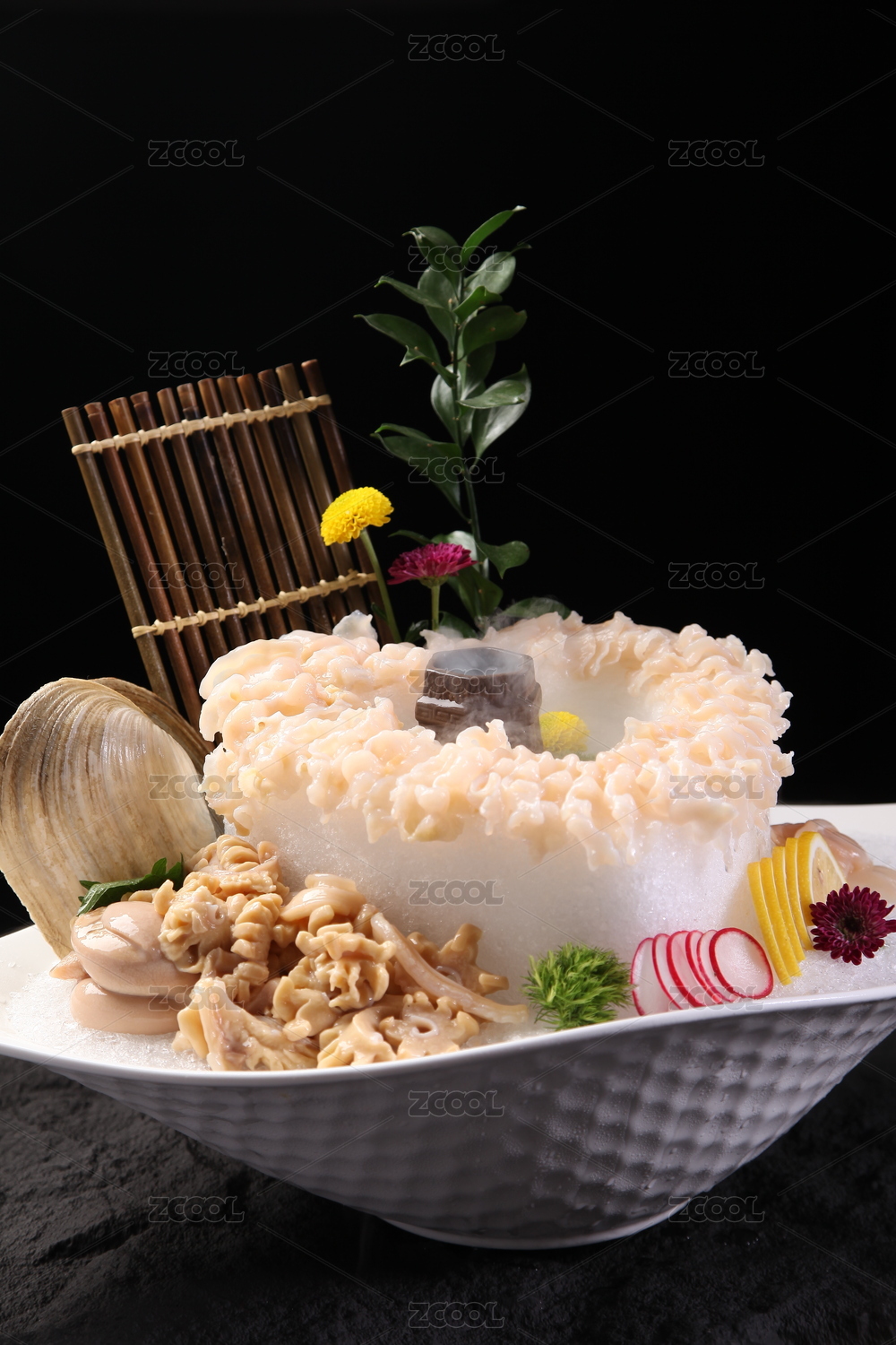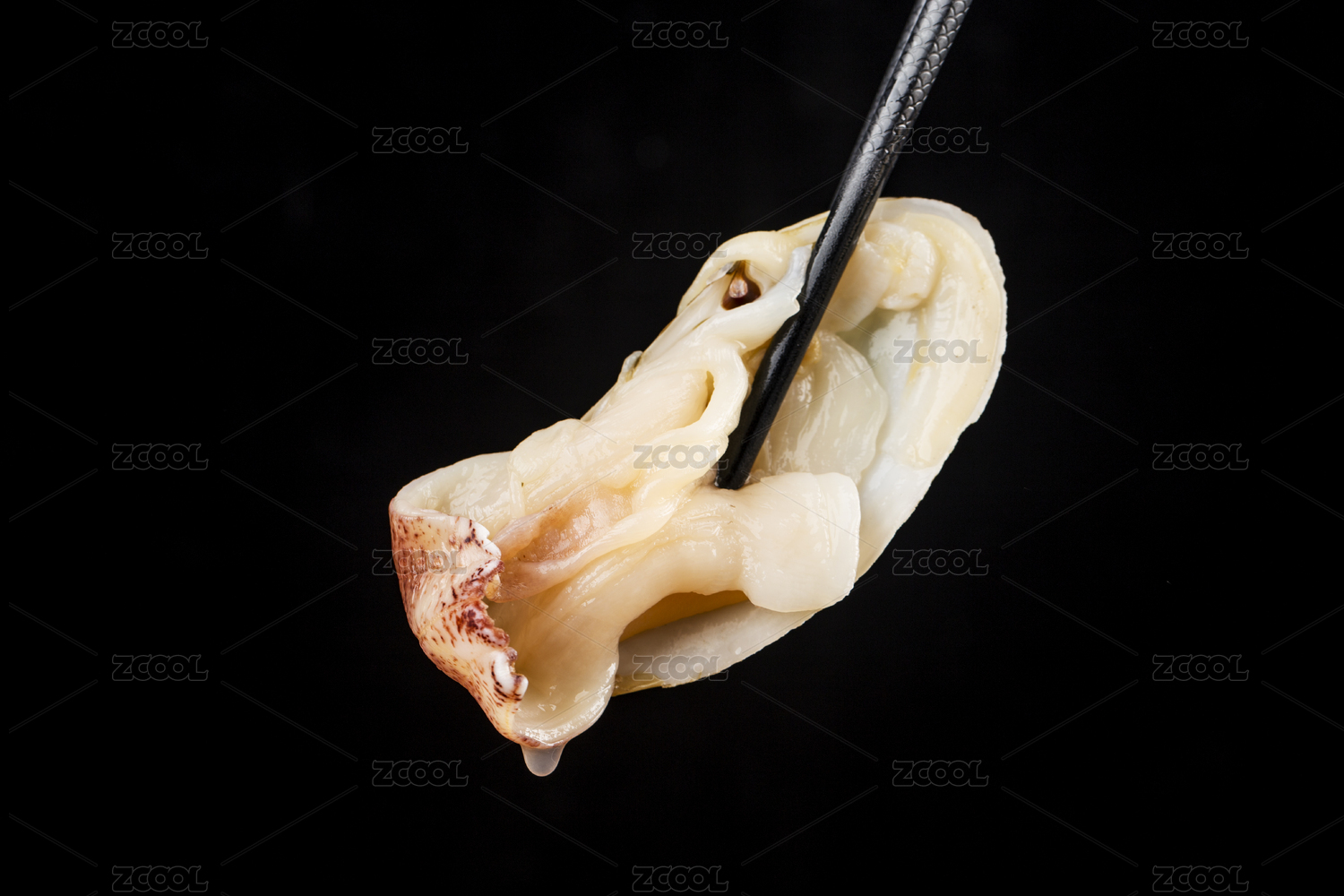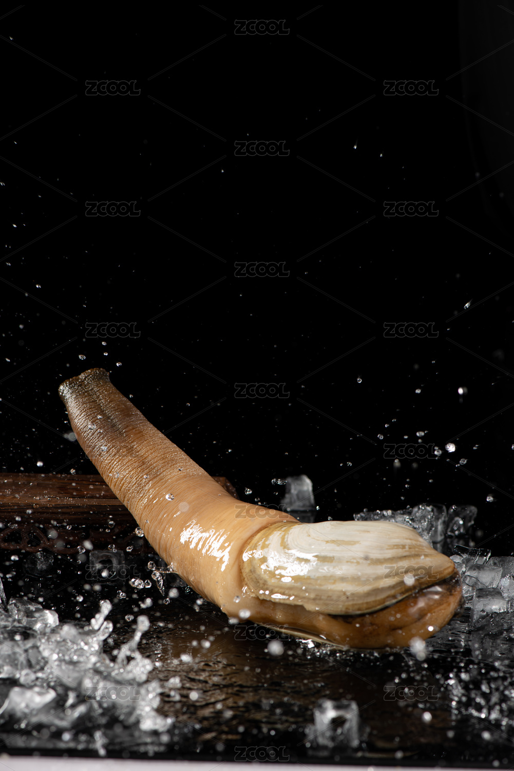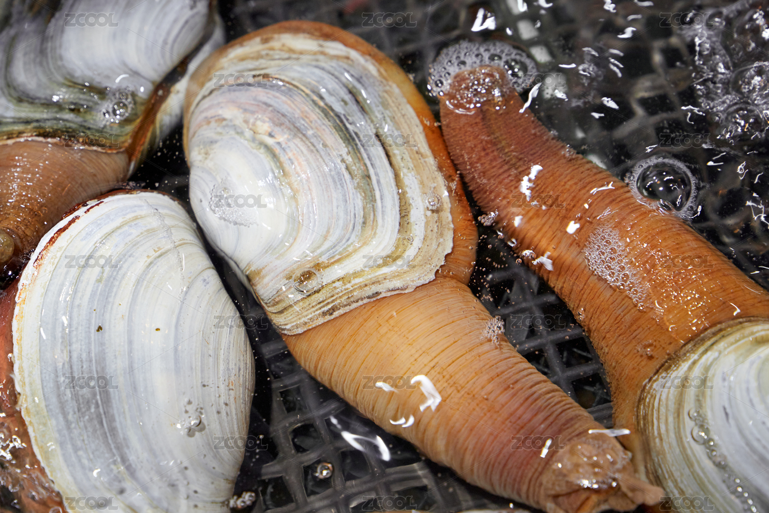 放在水里的幾個(gè)新鮮的水產(chǎn)品象拔蚌