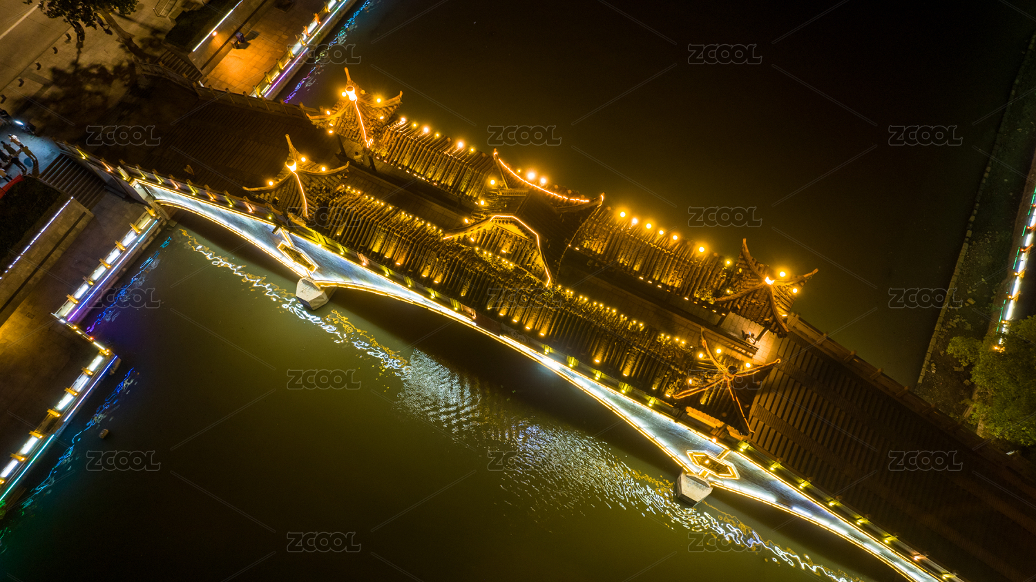中國江蘇淮安亭亭玉立古韻綿長的常盈橋夜景