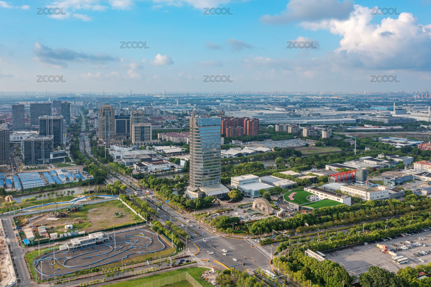 中國上海市嘉定區(qū)安亭鎮(zhèn)汽車公園航拍風(fēng)景