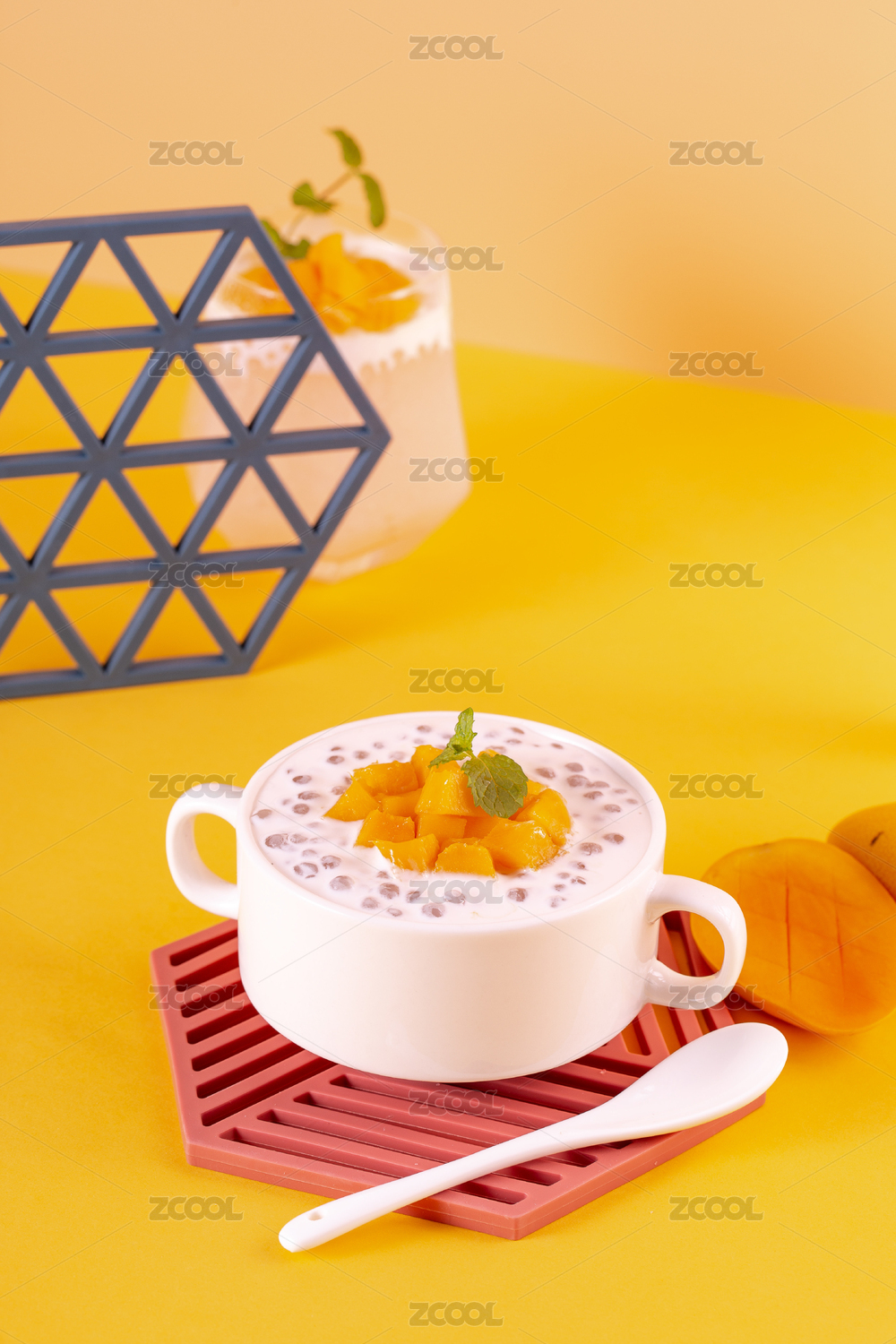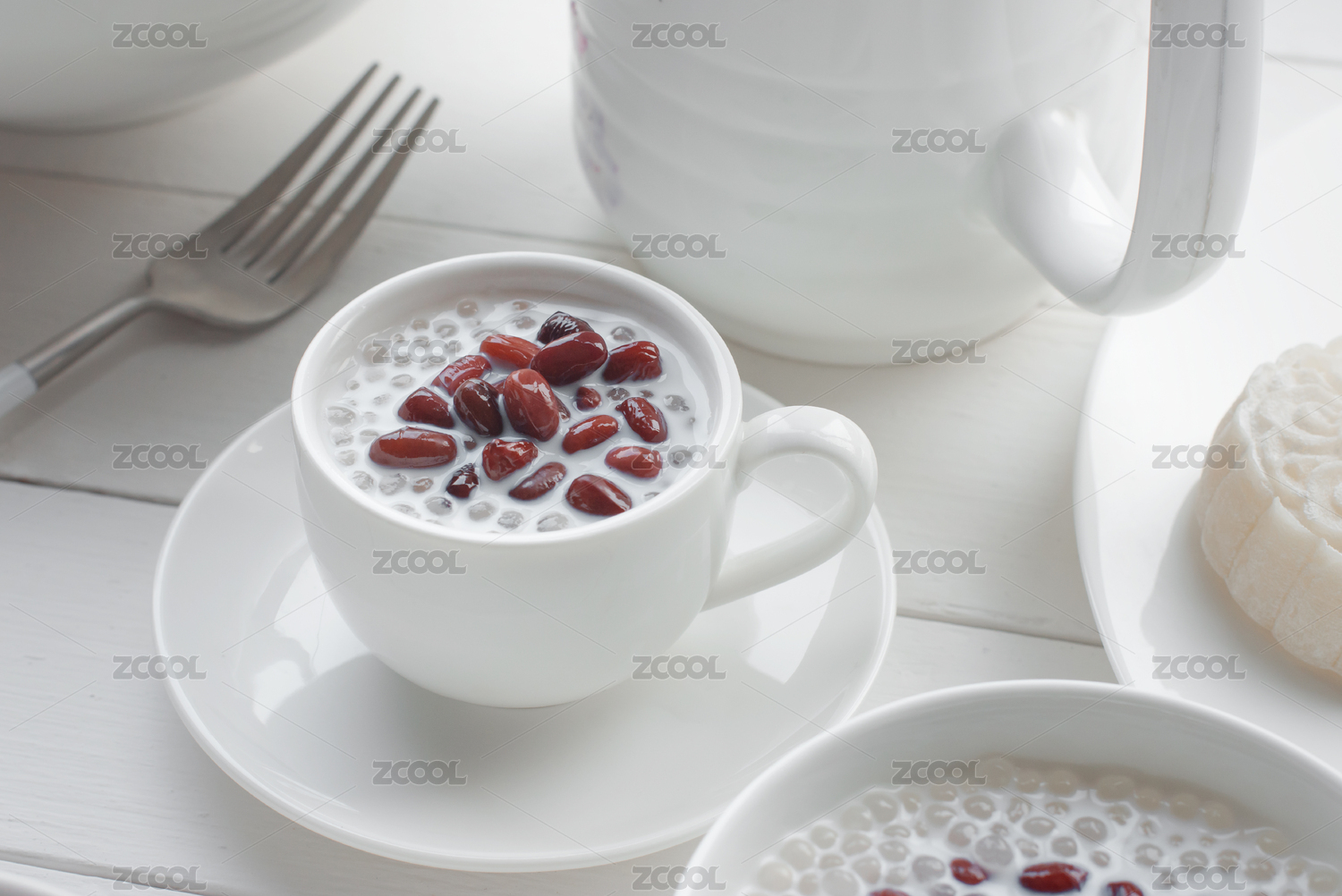 白色圓桌上放著一杯香芋西米露糖水飲品