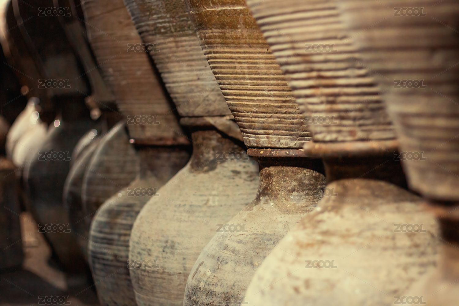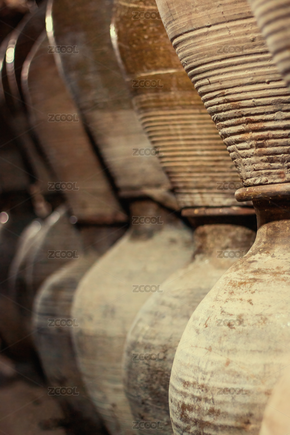 中國農(nóng)村室外放置的酒壇子特寫