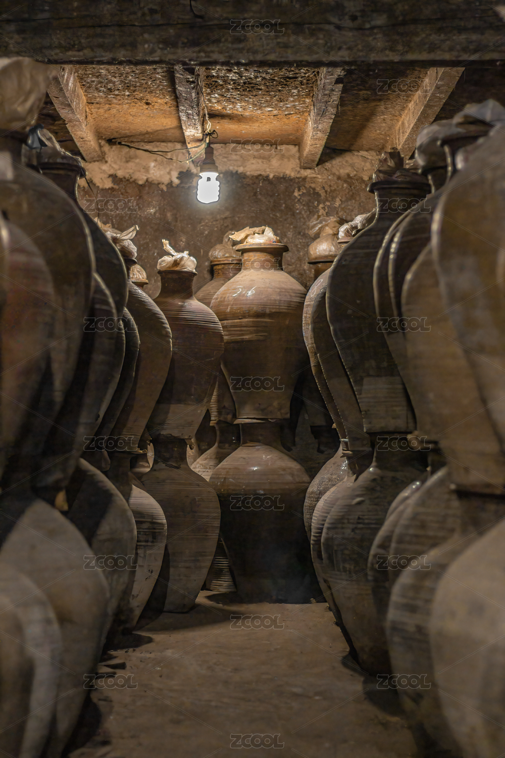 地窖內(nèi)壘疊起來采用固態(tài)發(fā)酵方式的發(fā)酵酒缸