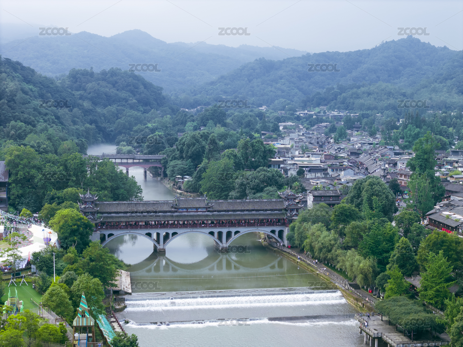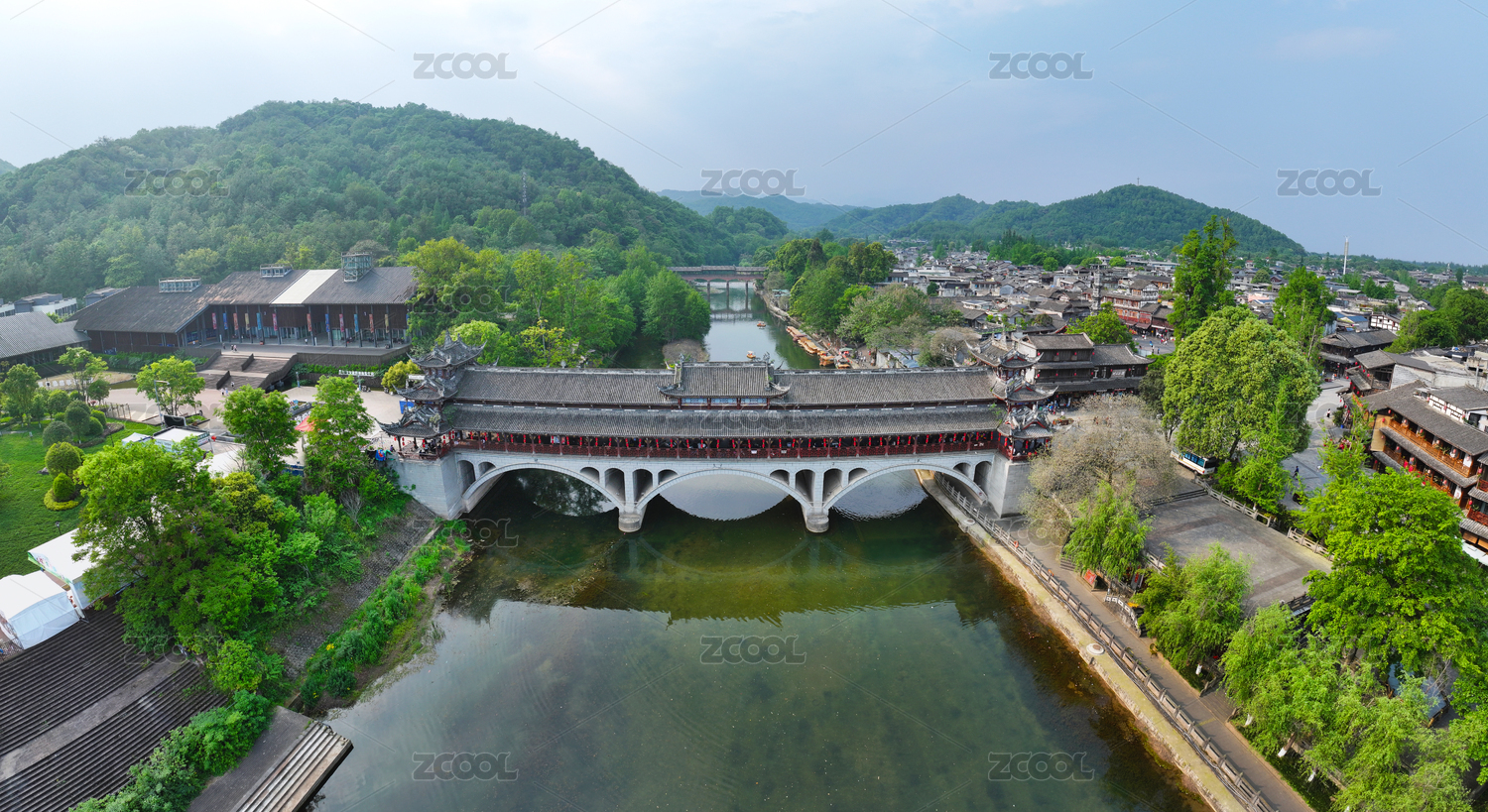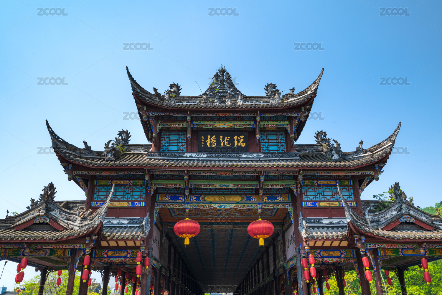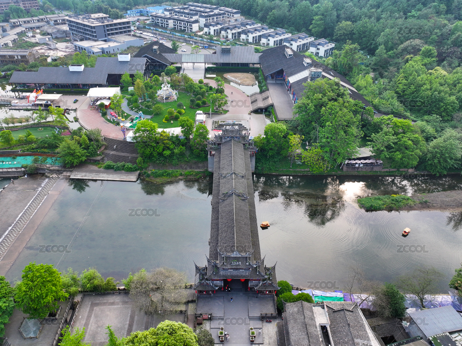 四川崇州市街子古鎮(zhèn)瑞龍橋白晝晴天
