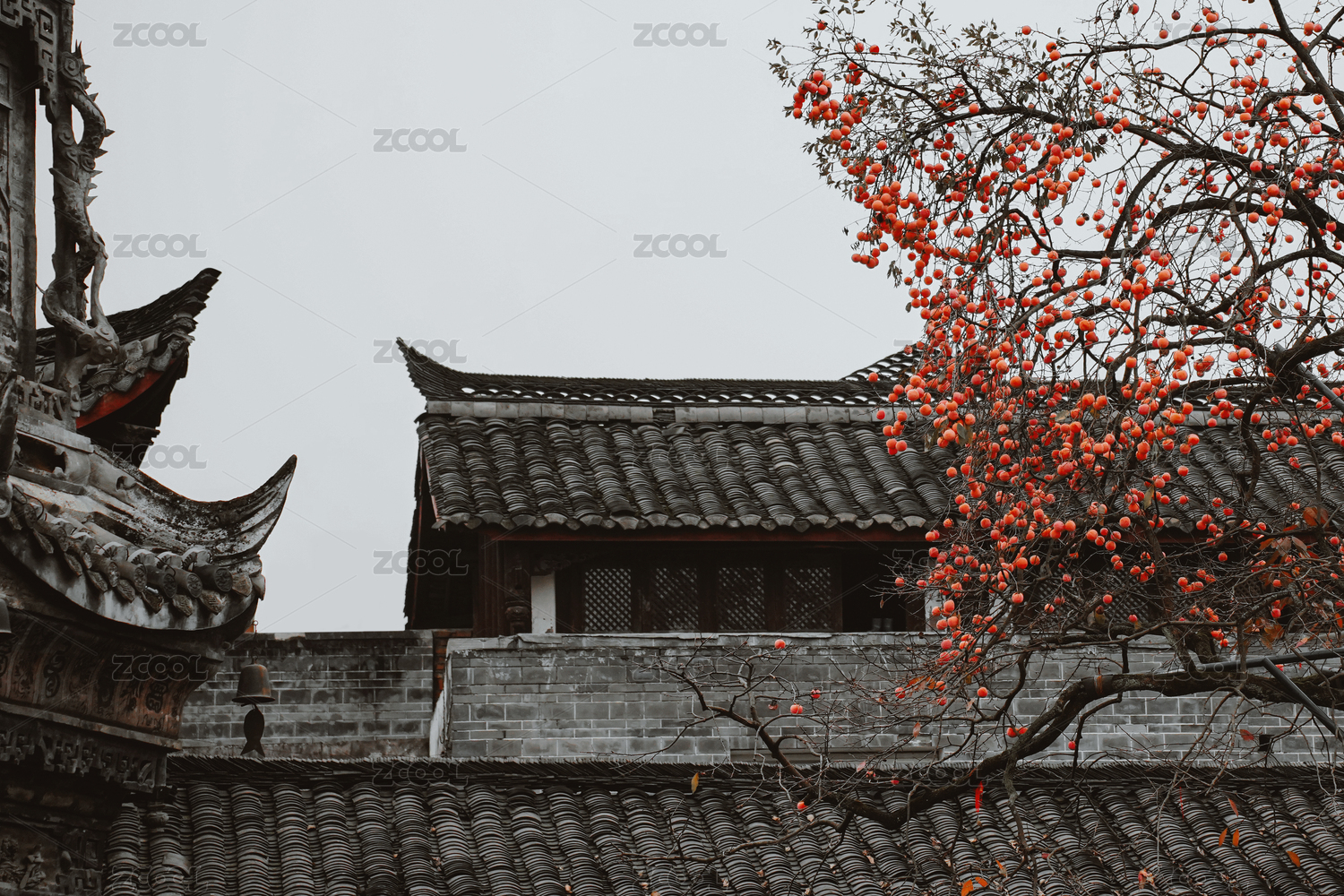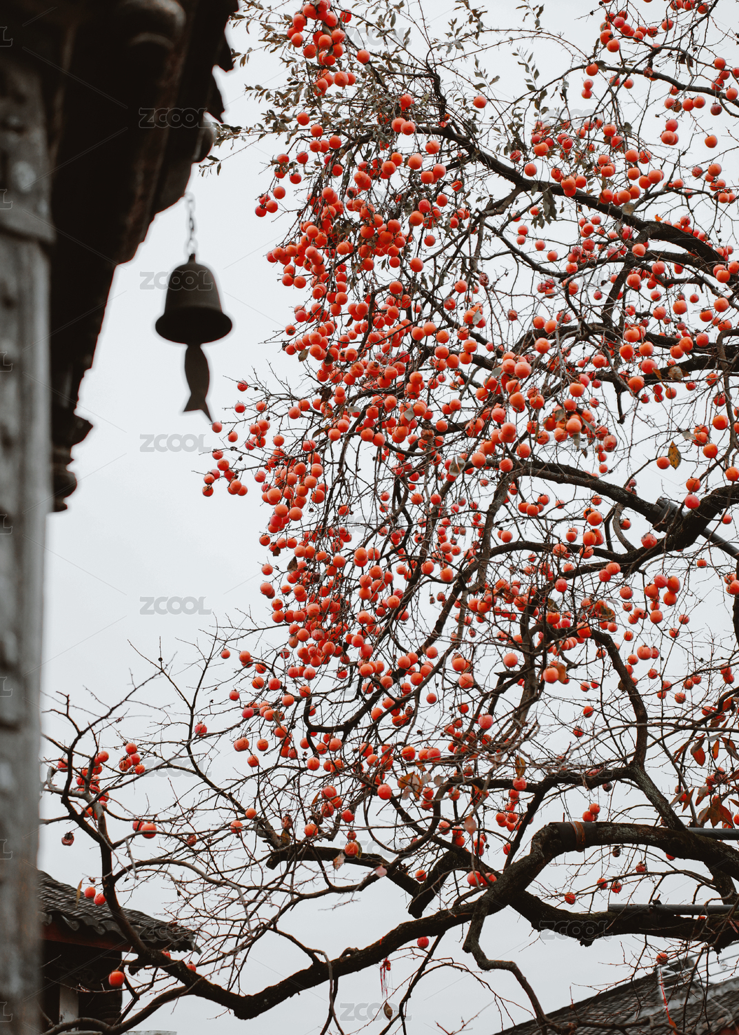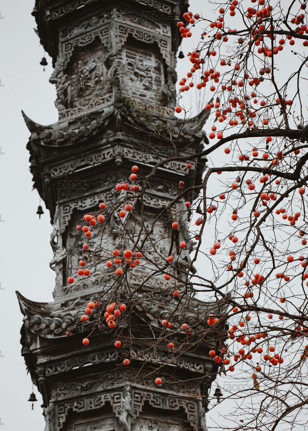 中國四川省成都市崇州街子古鎮(zhèn)字庫塔柿子樹
