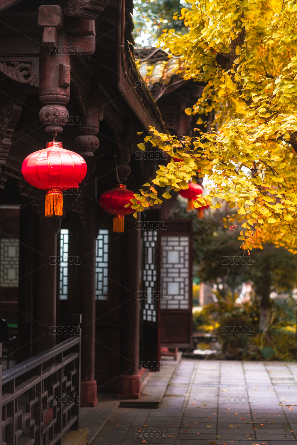 四川成都街子古鎮(zhèn)建筑秋季風光
