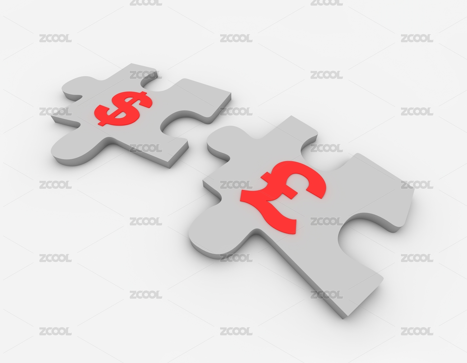 拼圖與貨幣符號(hào),金融經(jīng)濟(jì)合作與團(tuán)隊(duì),解決方案, 美元與英鎊符號(hào)