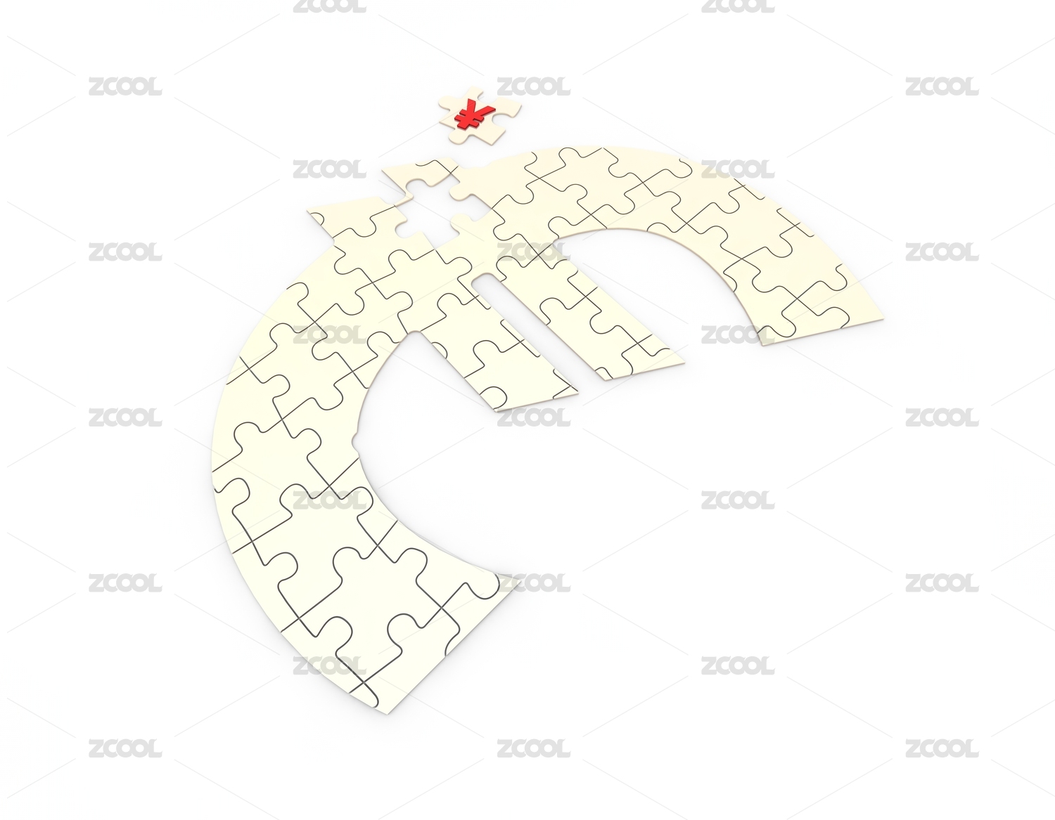 拼圖與貨幣符號(hào),金融經(jīng)濟(jì)合作與團(tuán)隊(duì),解決方案, 人民幣與美元符號(hào)
