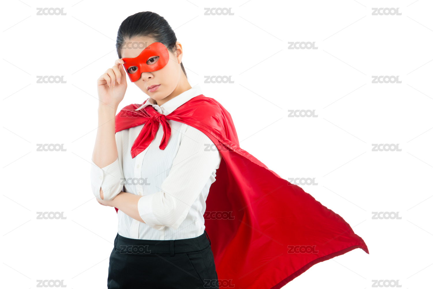 年輕認(rèn)真女強(qiáng)人律師的思維解決方案的感覺(jué)頭痛痛苦的打扮,戴著護(hù)目鏡和斗篷隔絕在白色背景上的空白COPYSPACE英雄。