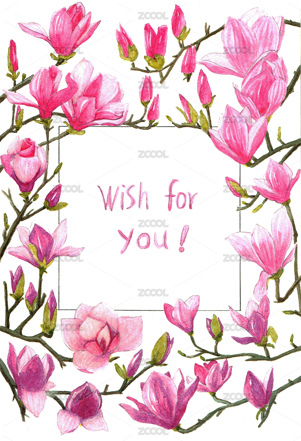 紫玉蘭 木蘭花 唯美 邊框 花邊 裝飾 賀卡 封面 祝福