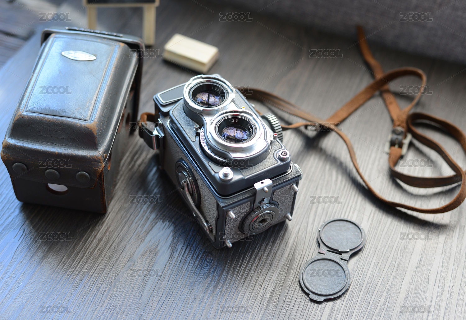 室內(nèi)灰色背景前中畫幅膠片雙反陳舊的照相機