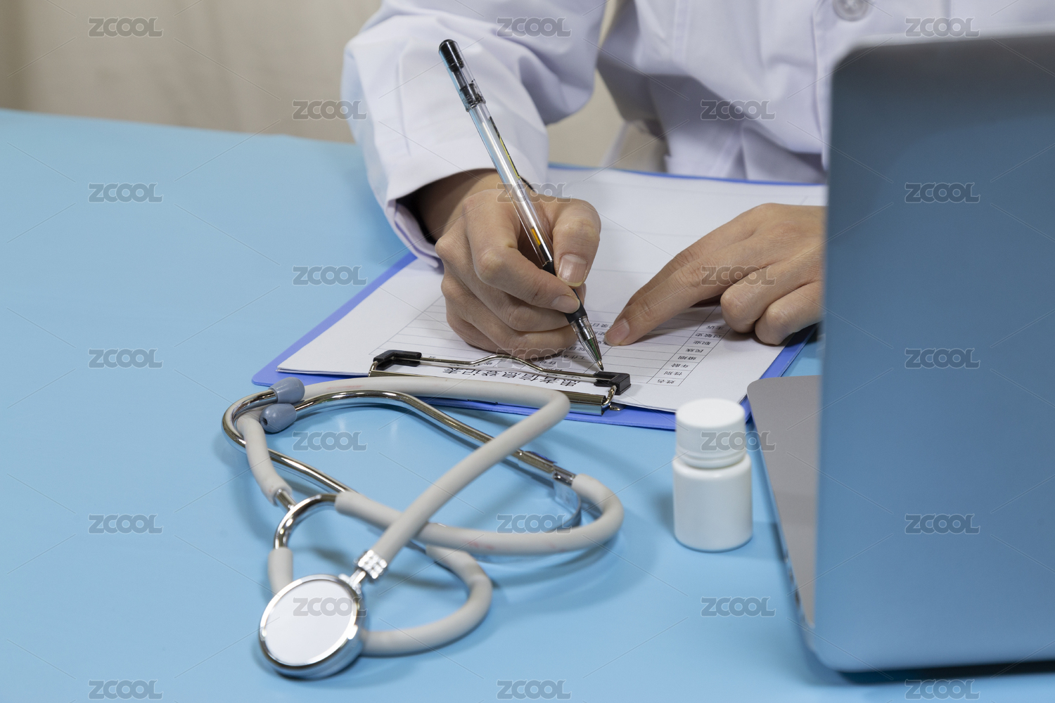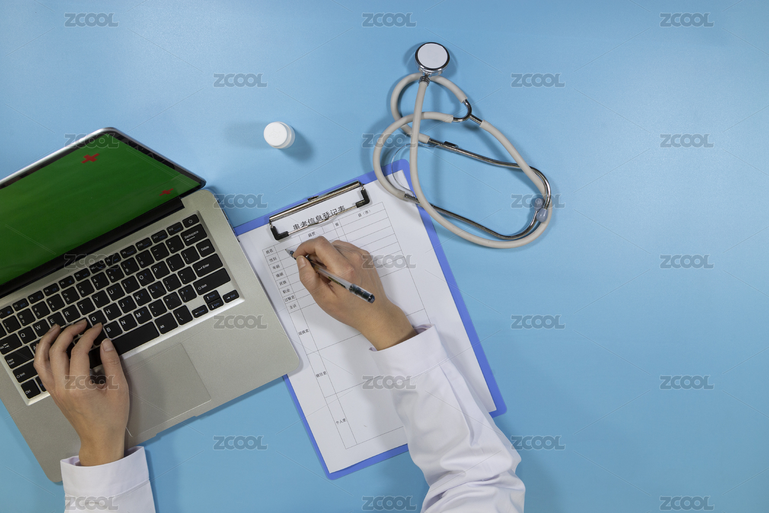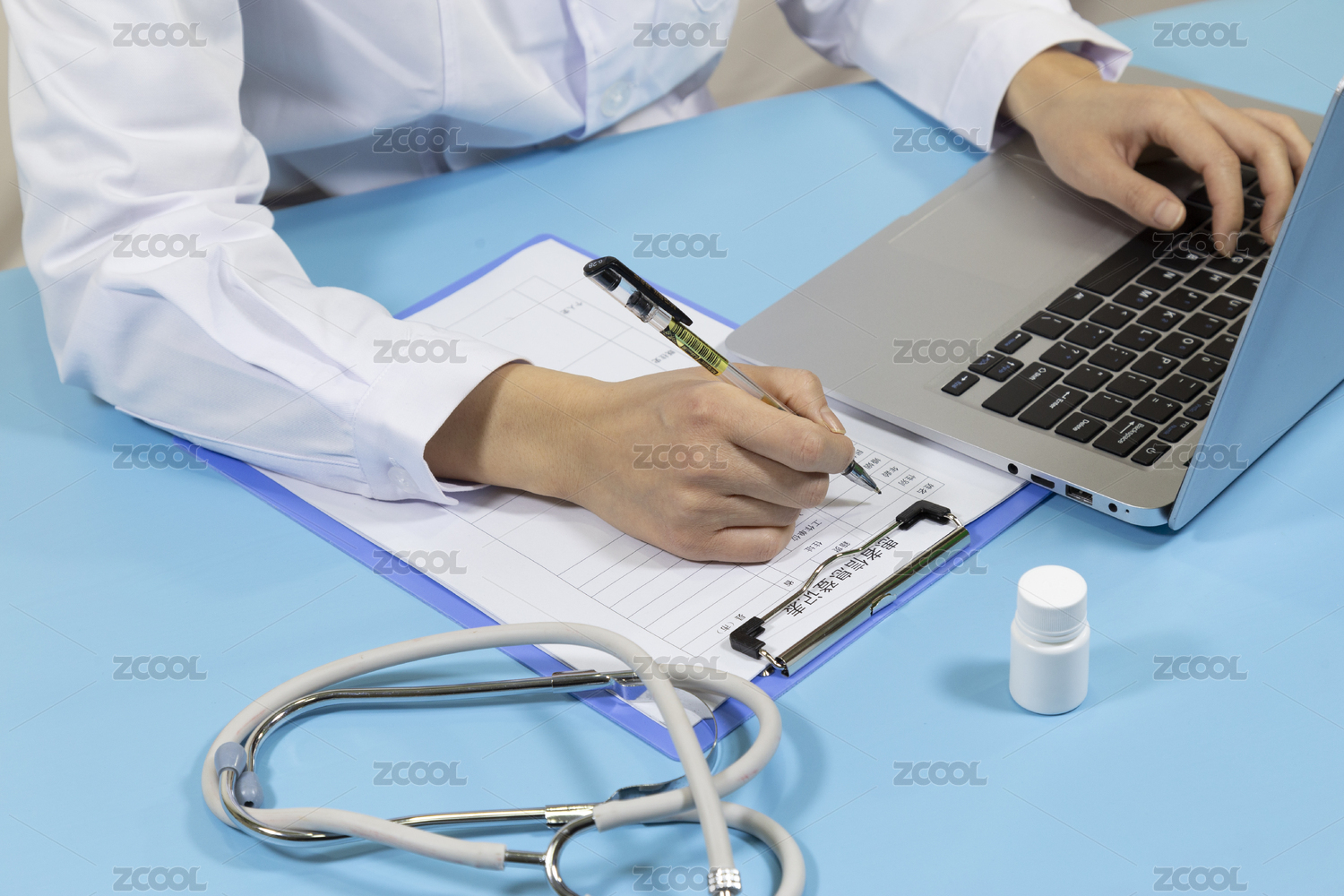 醫(yī)生日常電腦前工作寫(xiě)報(bào)告問(wèn)診