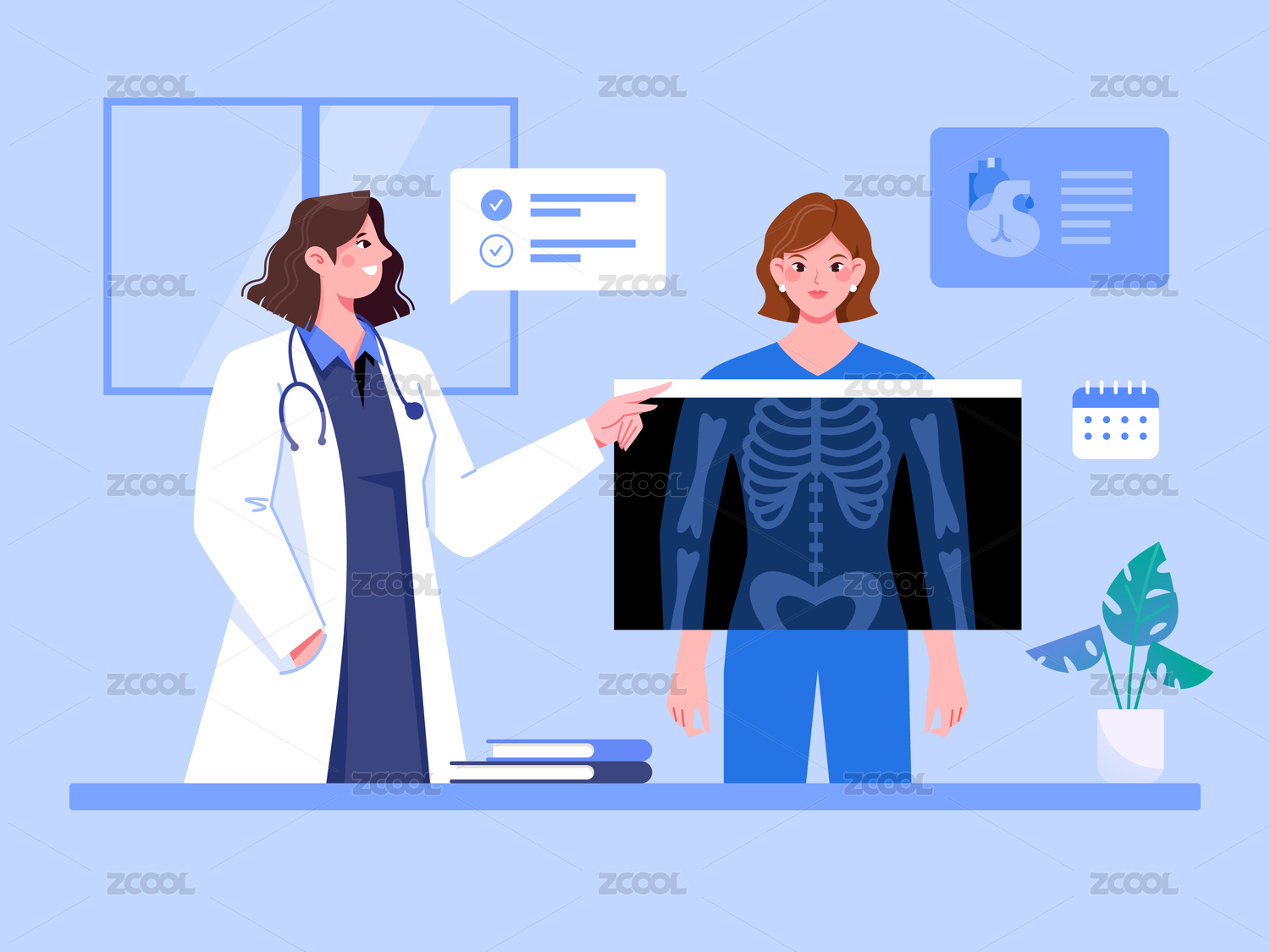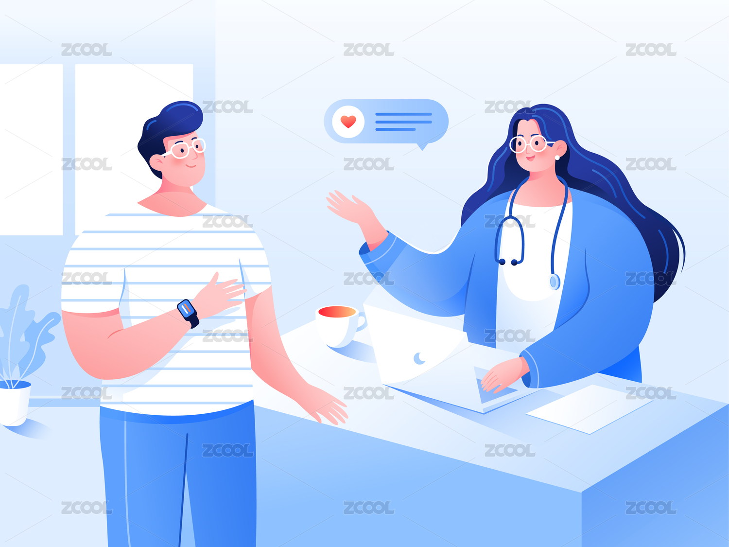 患者與女醫(yī)生交流健康狀況醫(yī)療場(chǎng)景矢量插畫