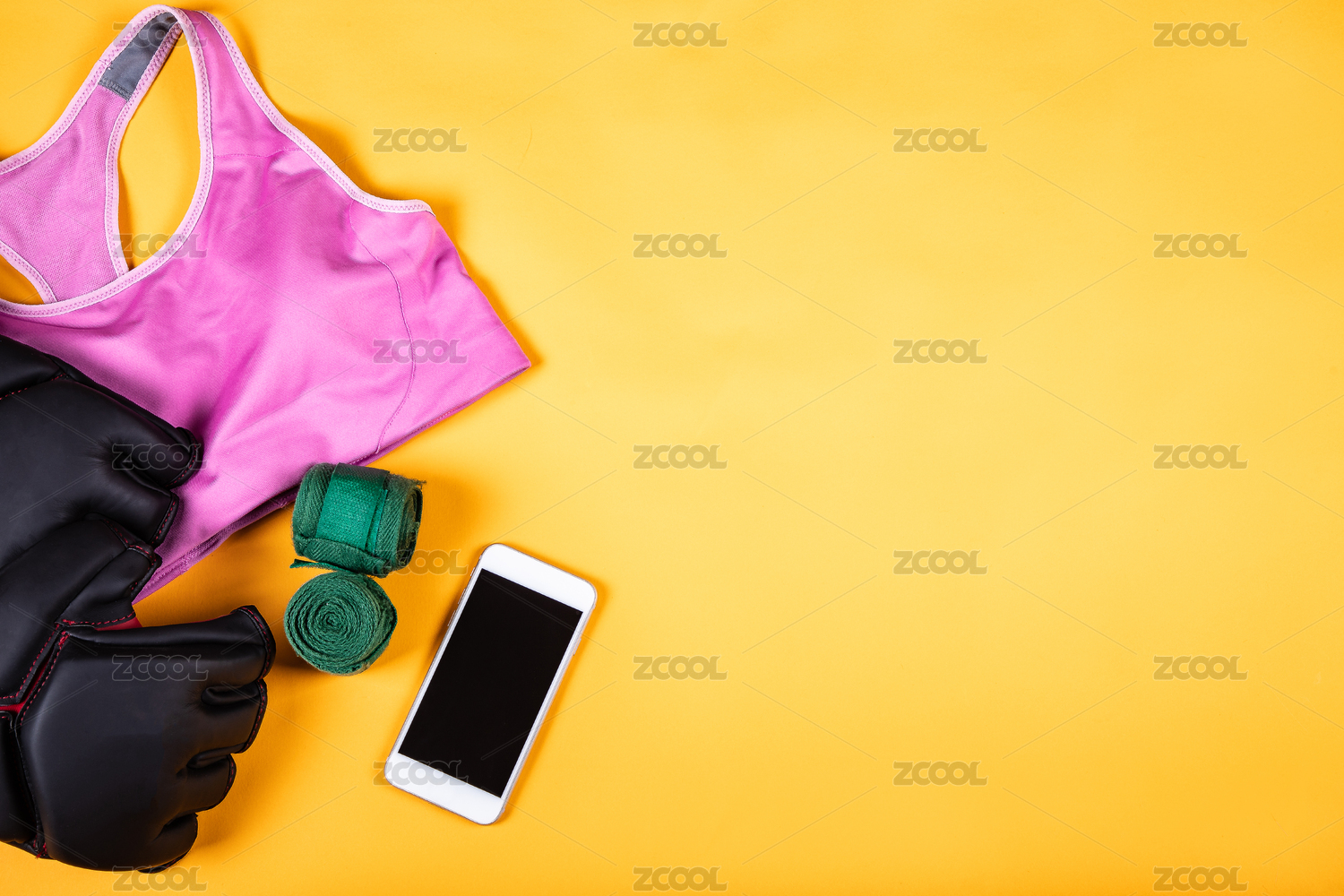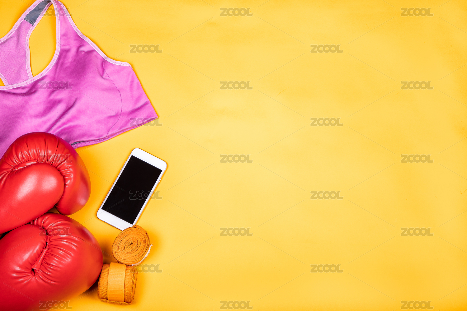 正上方視角橙色背景運(yùn)動(dòng)器材