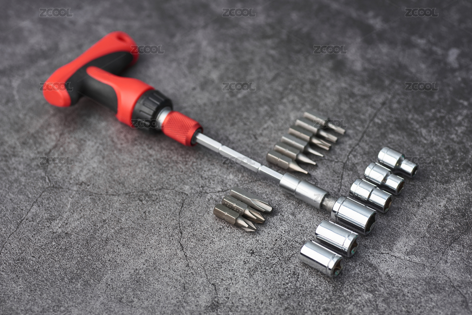 灰色背景中的五金工具扳手和套筒