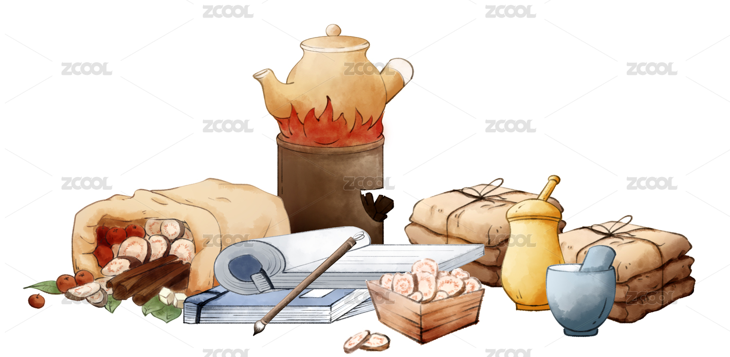 中醫(yī)藥材熬藥養(yǎng)生手繪插畫元素