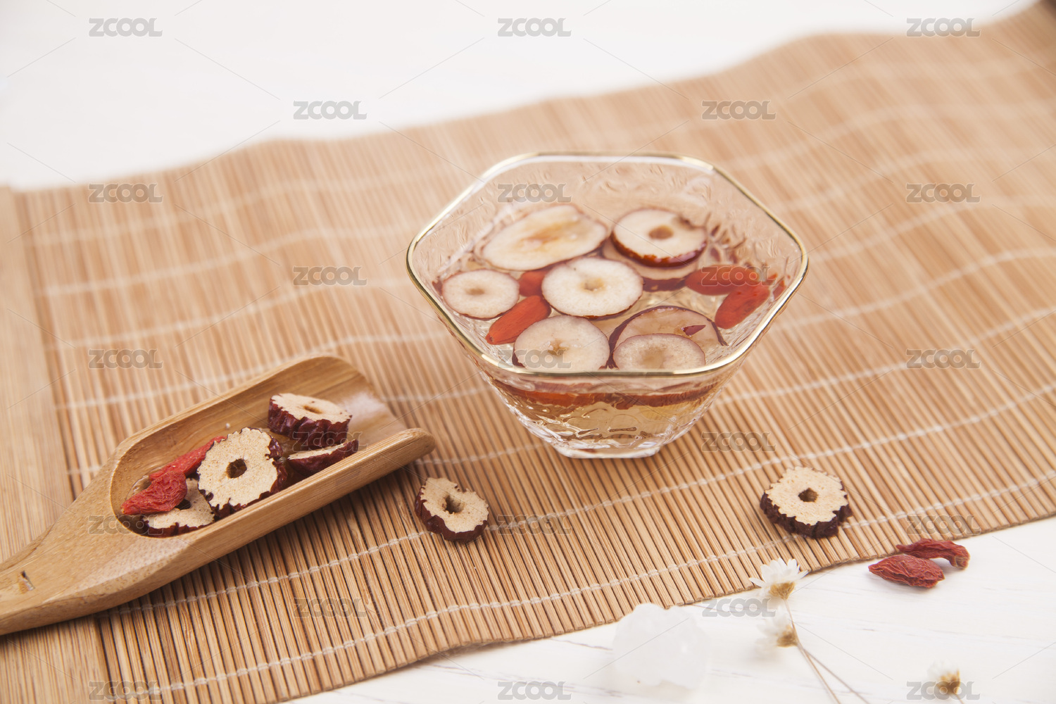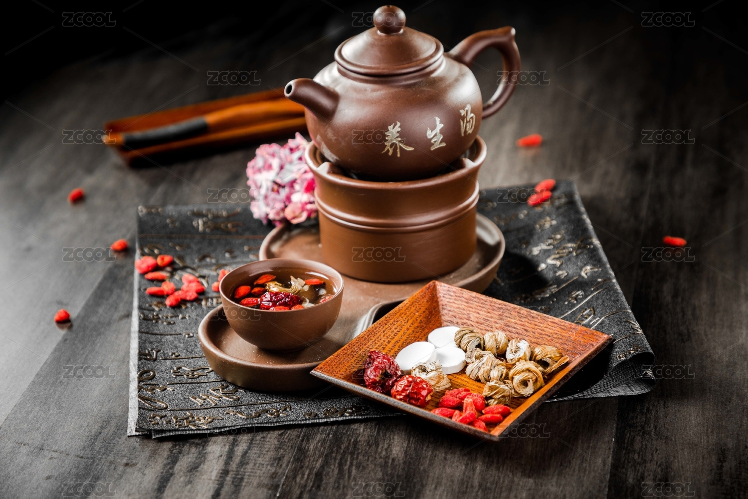 黃色背景中國傳統(tǒng)保健養(yǎng)生八寶茶