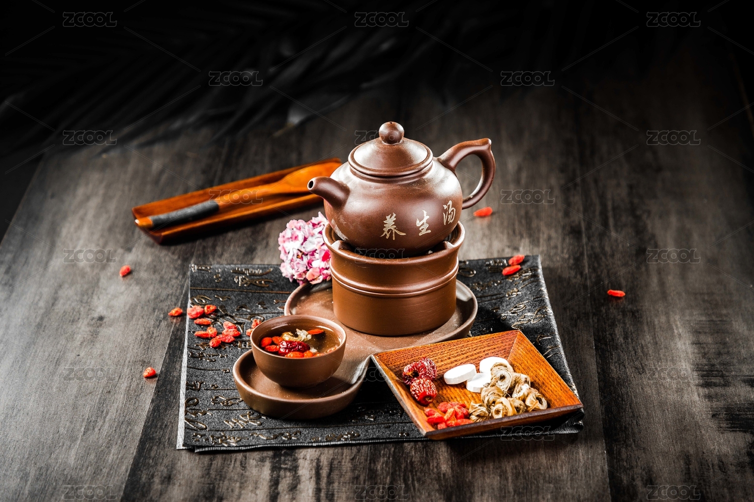 一把酒精爐上的紫砂壺養(yǎng)生湯