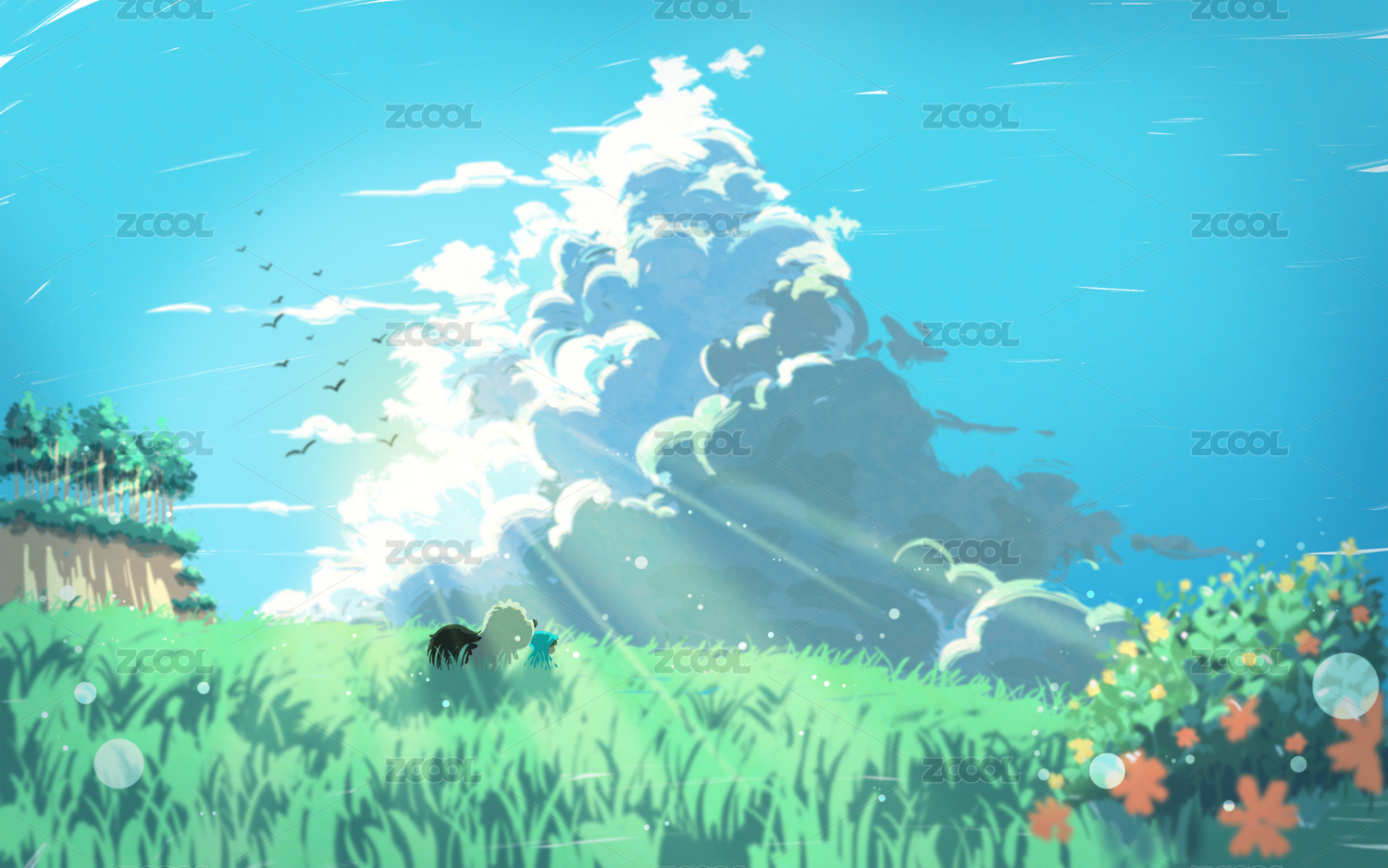 騎車遠眺的人,數(shù)碼繪畫。