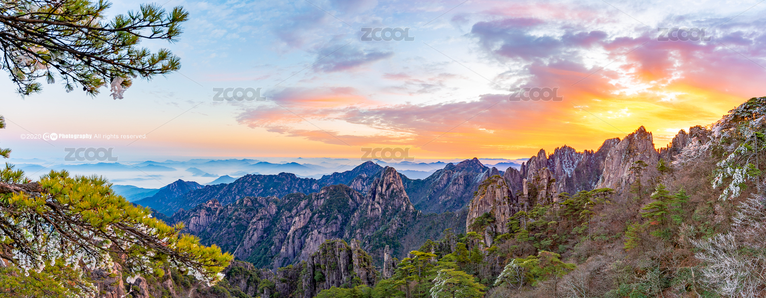 中國安徽黃山北海景區(qū)冬季早上的云海