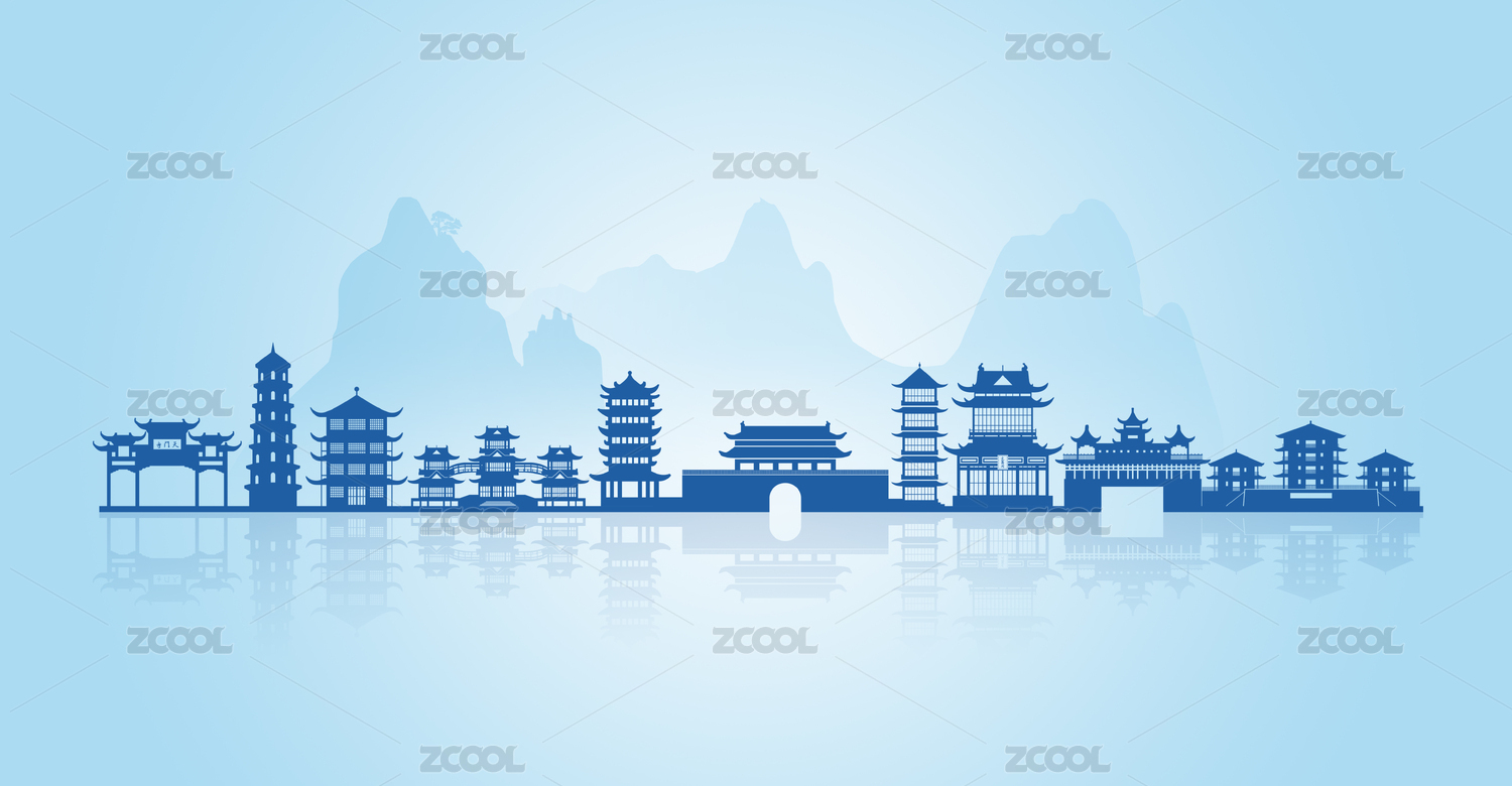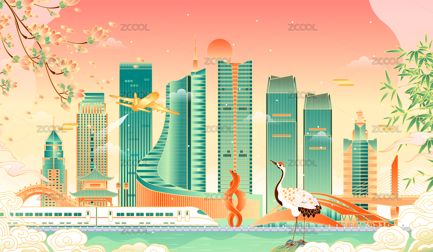 安徽省份城市地標群組合原創(chuàng)裝飾建筑插畫