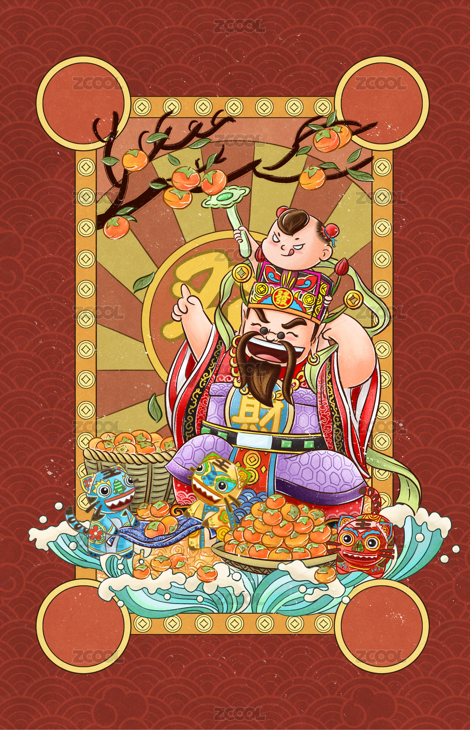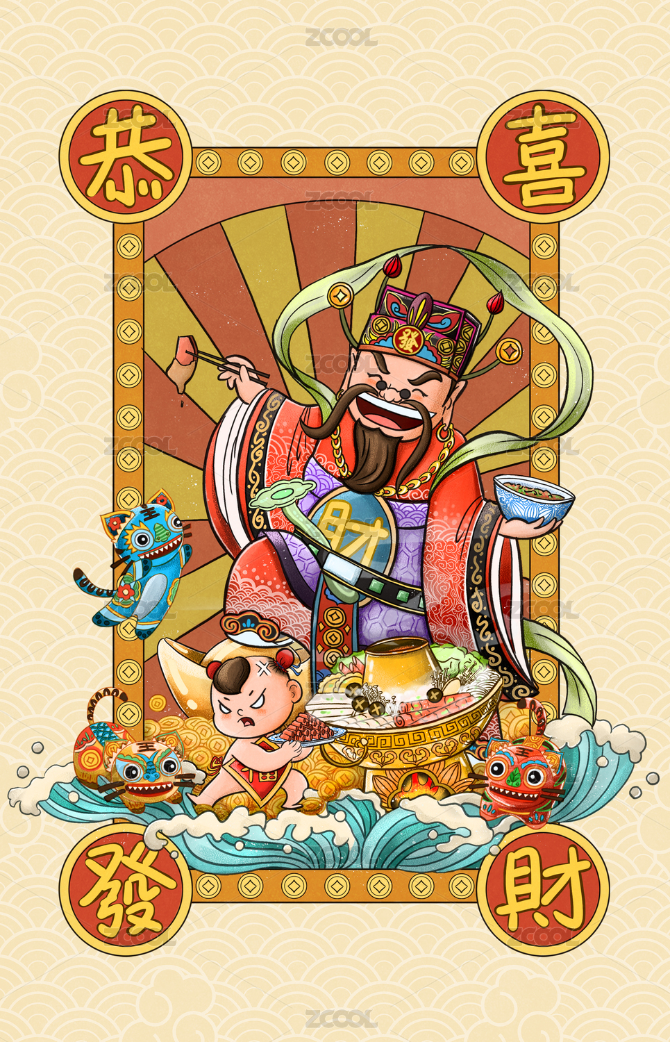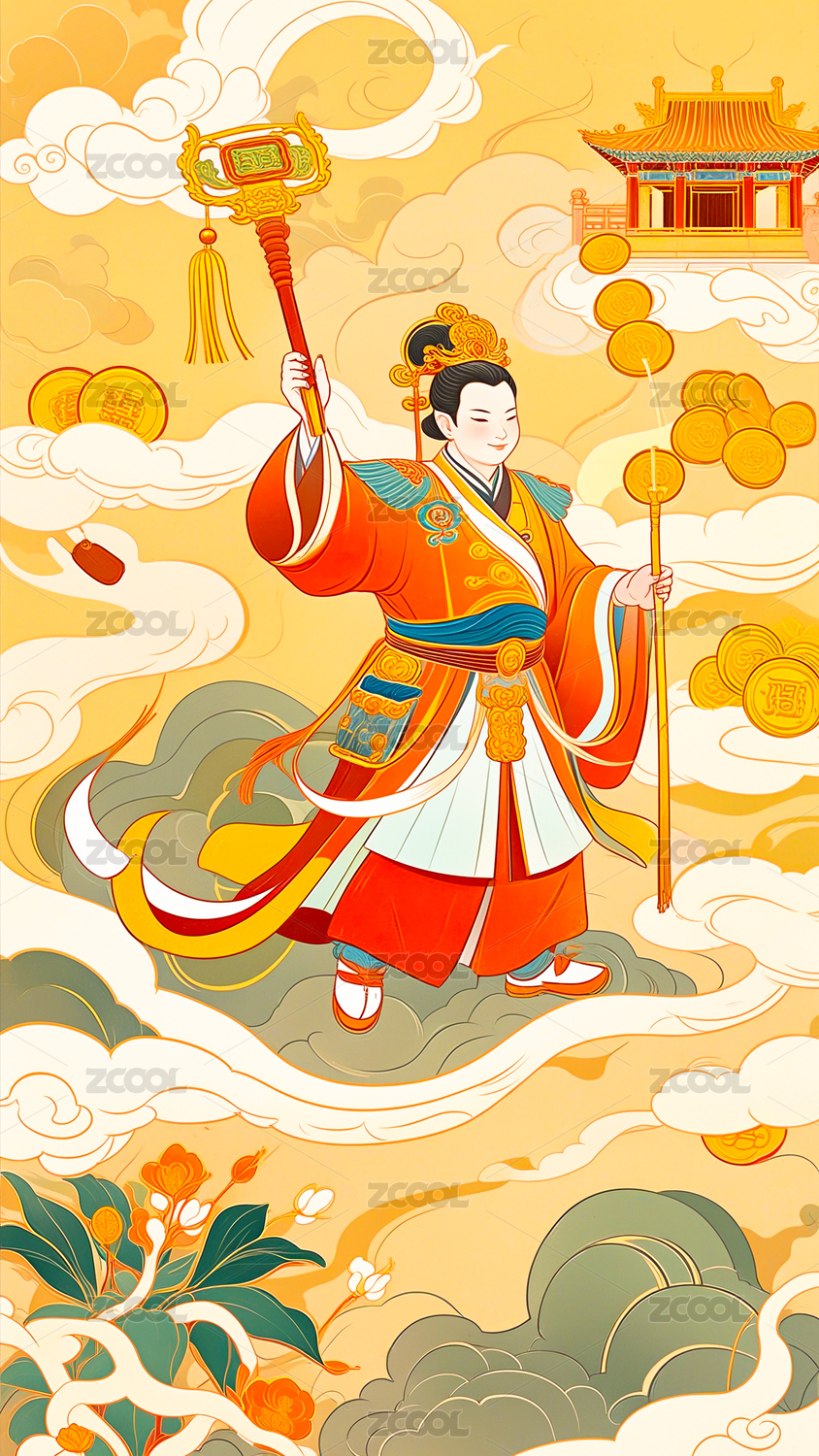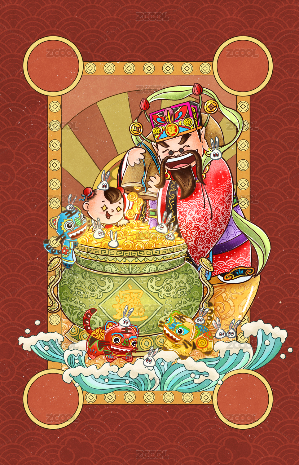 蛇年財神 財神駕到 蛇年IP卡通插畫