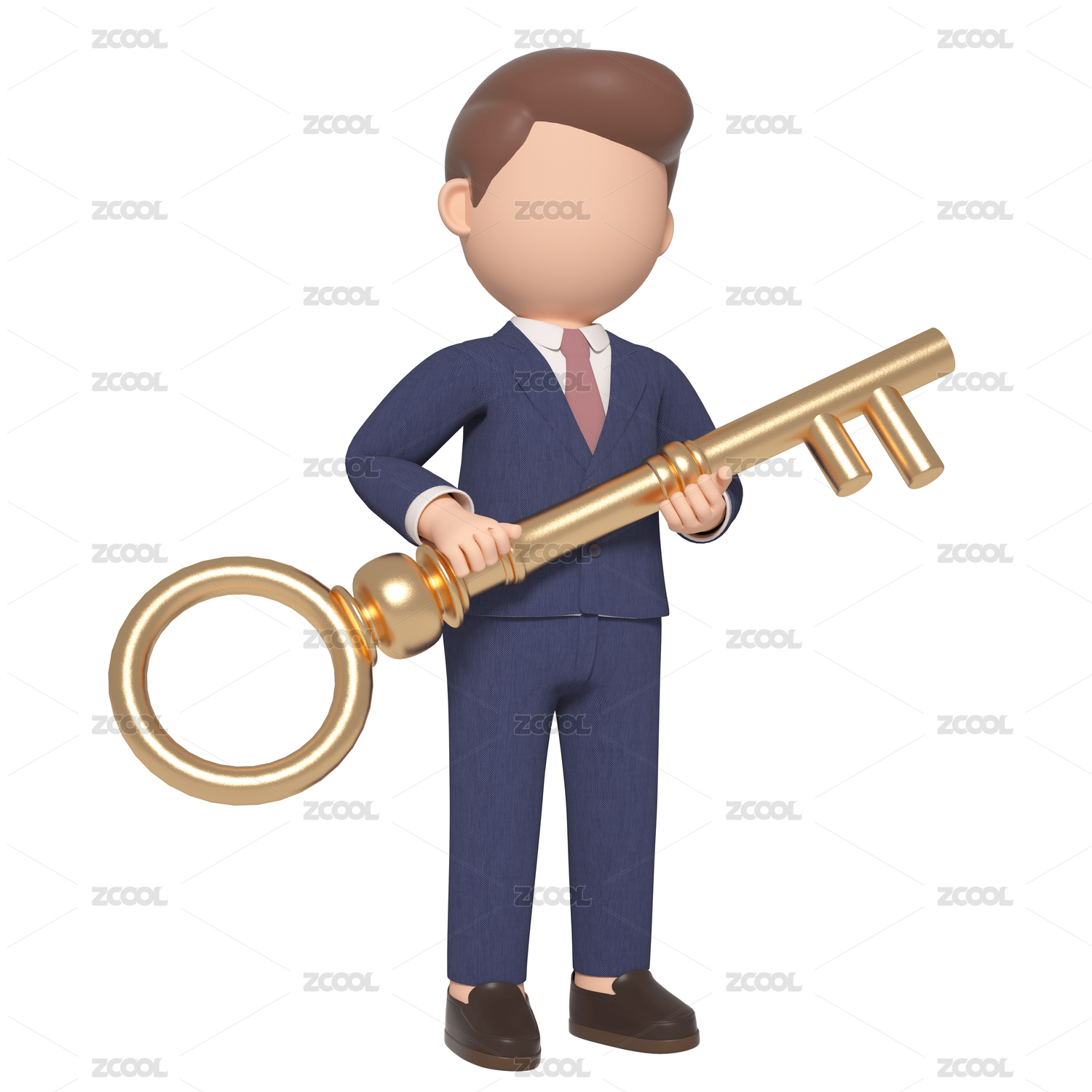 3D渲染抱金鑰匙的卡通商務(wù)男性