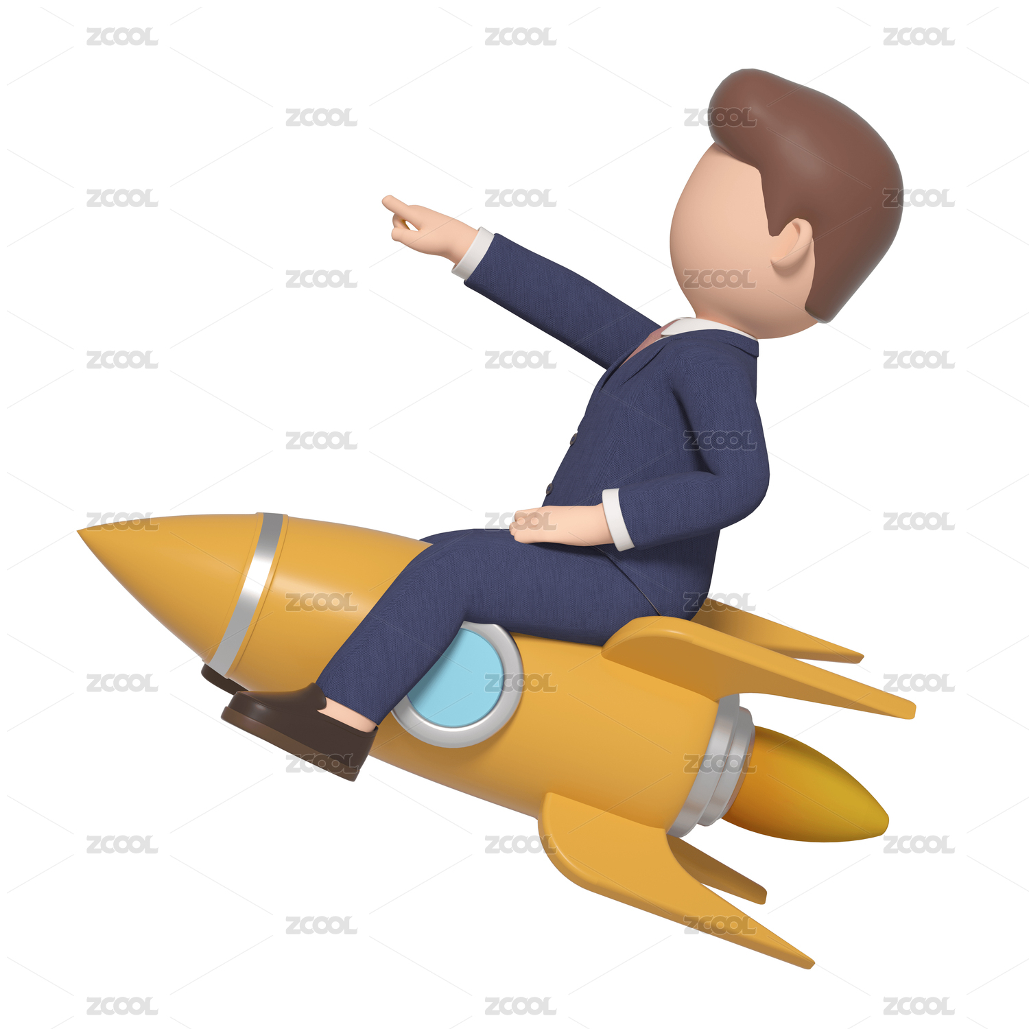 3D渲染騎火箭的卡通商務(wù)男性