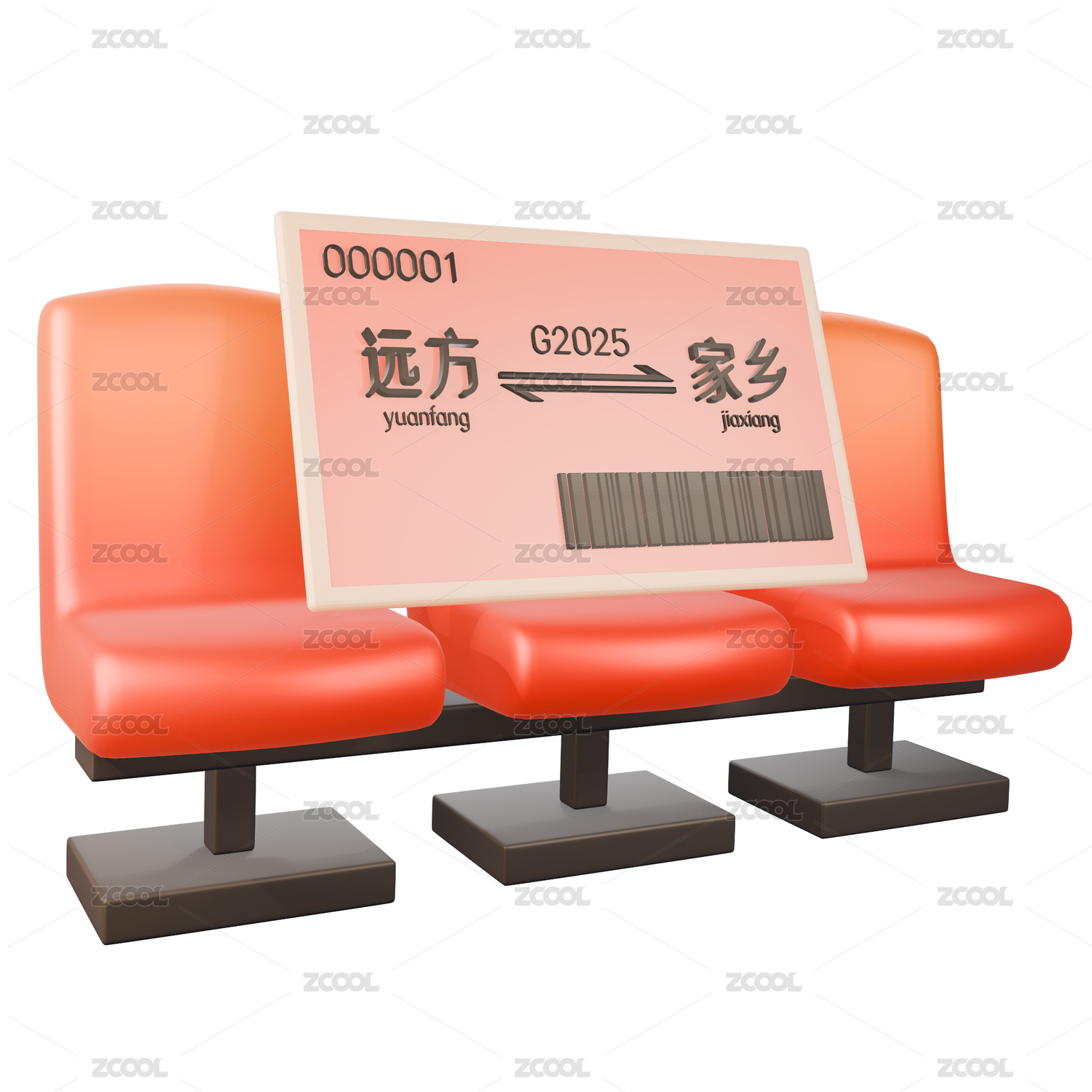 候車室座椅上的返程火車票春節(jié)過年春運元素