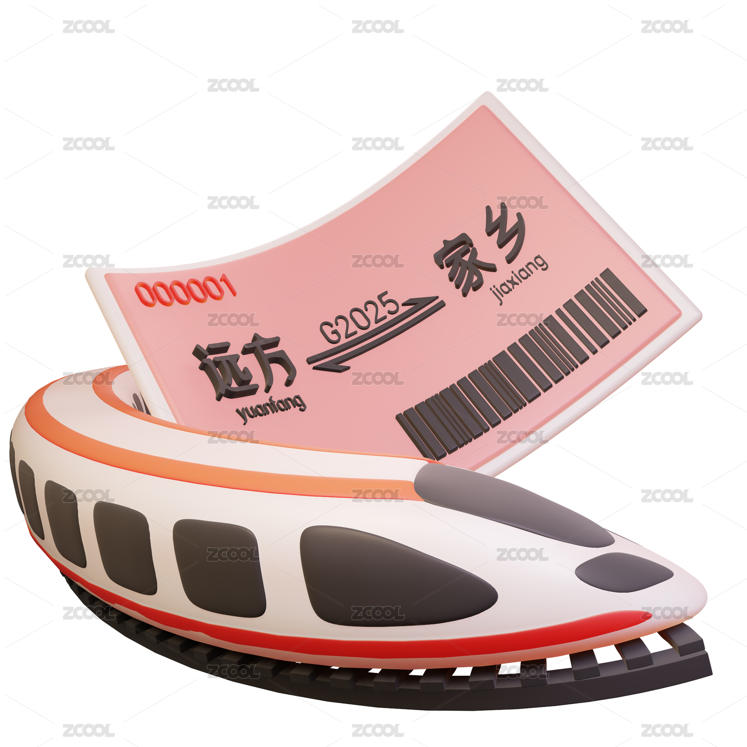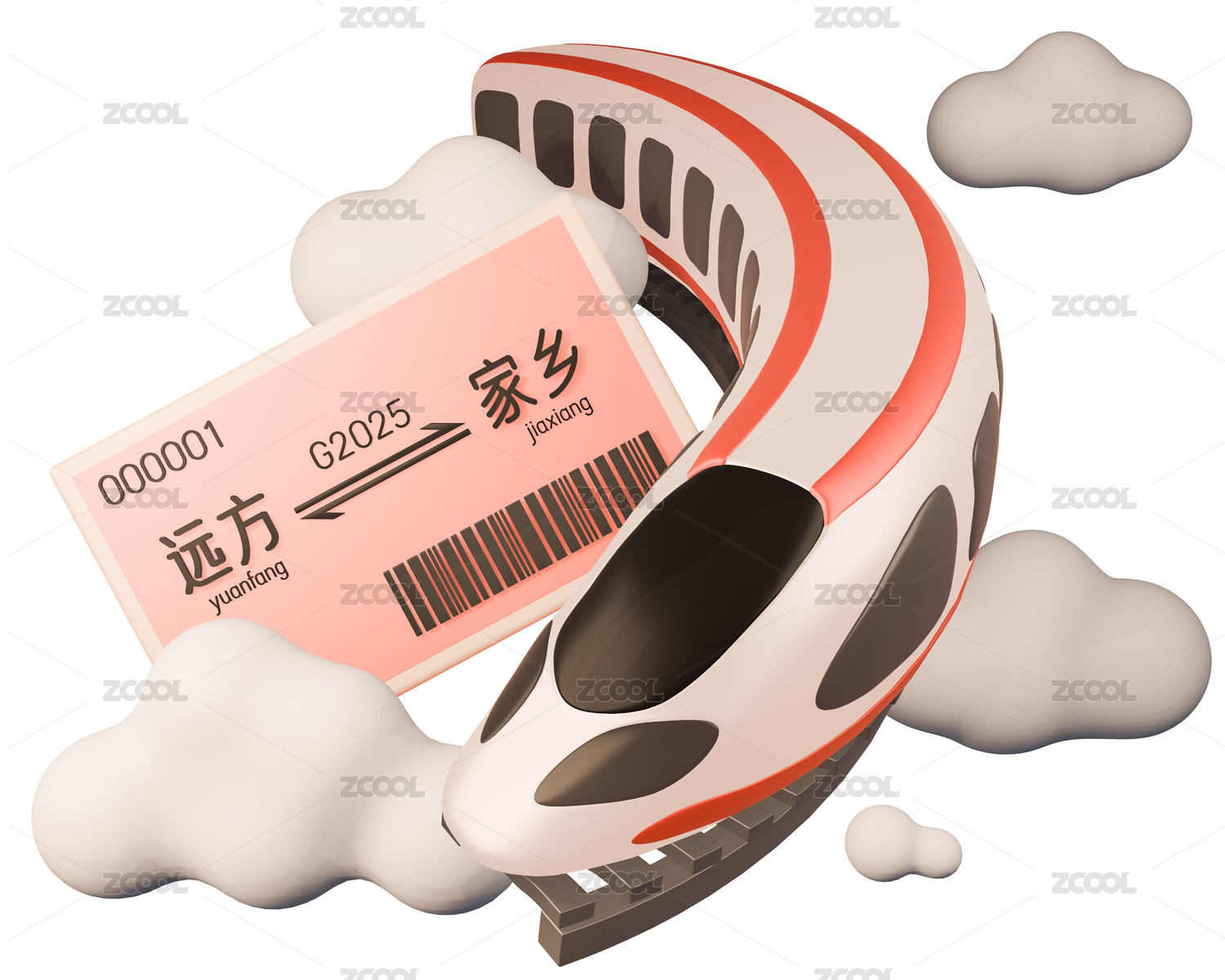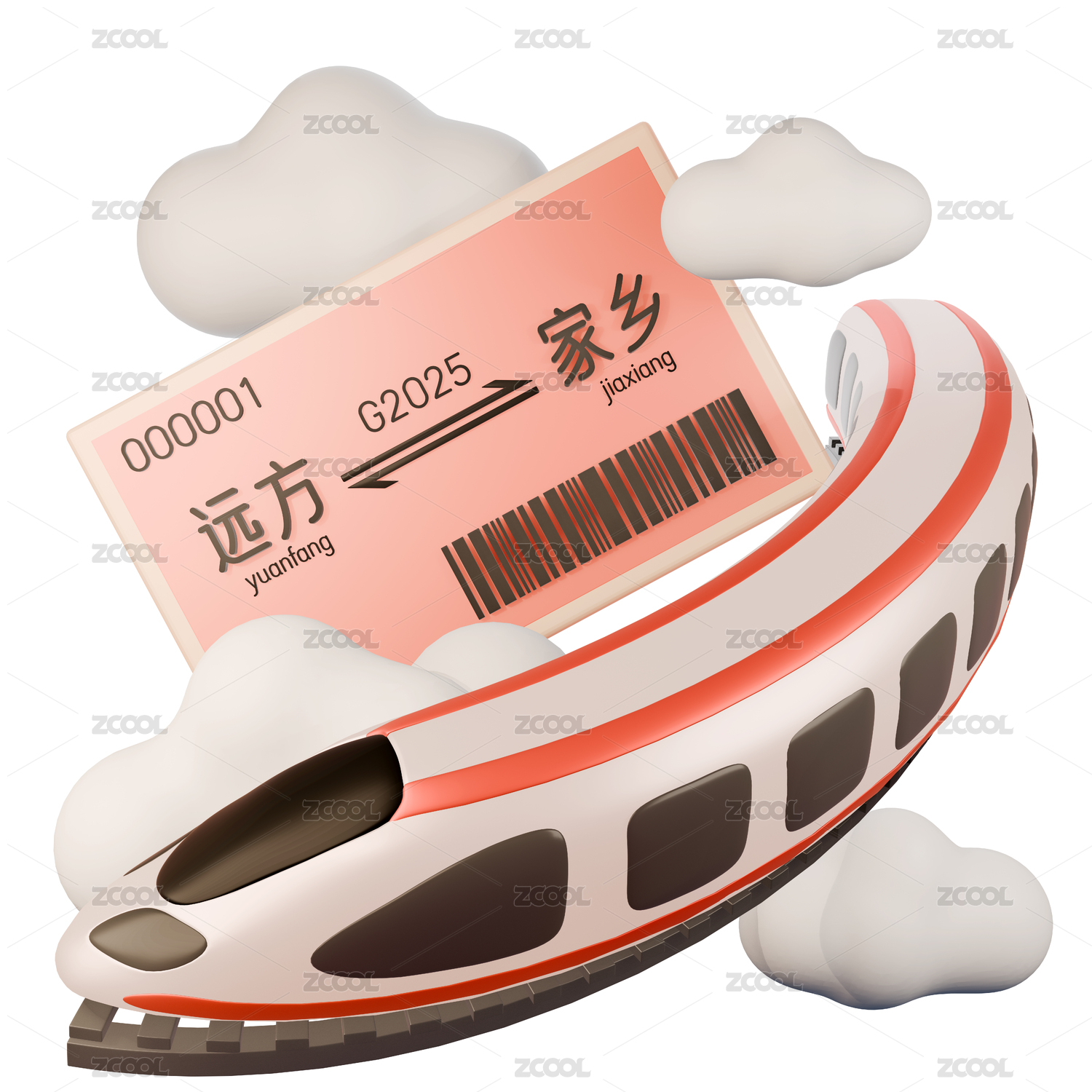 高鐵和車票春節(jié)過年回家春運3d立體元素