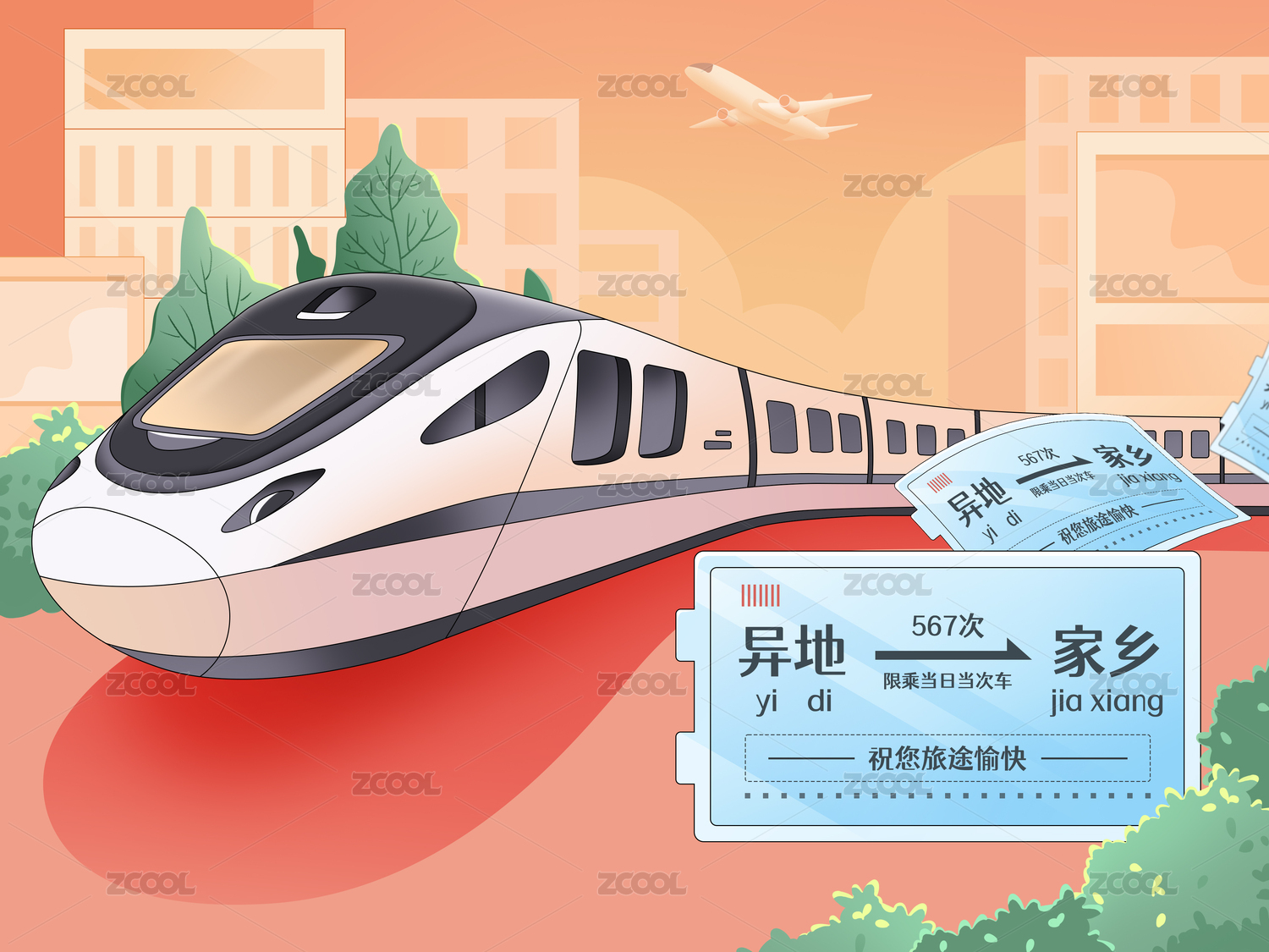 新年春運高鐵火車票搶票活動矢量元素插畫