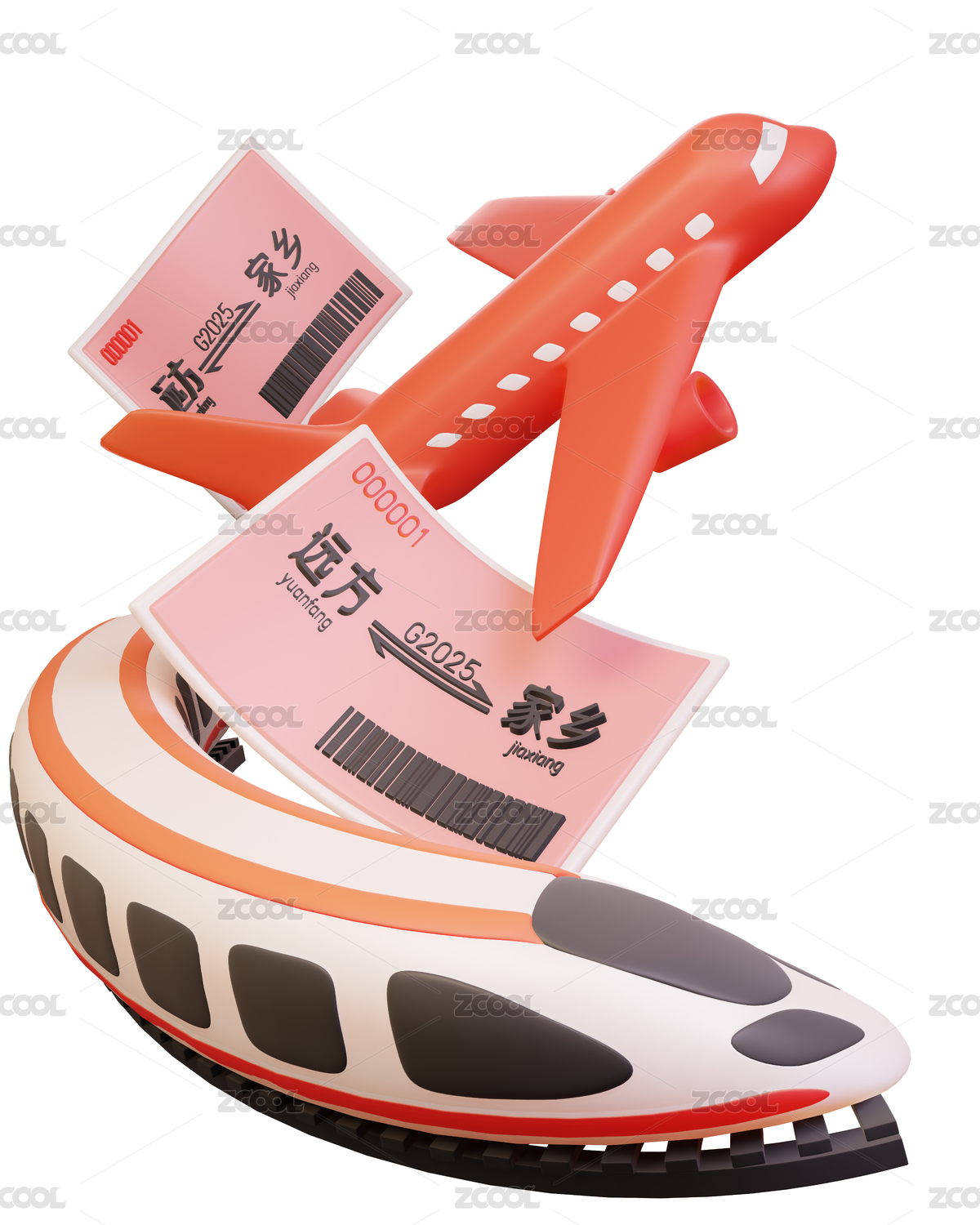 高鐵和飛機和車票春節(jié)過年春運3d元素