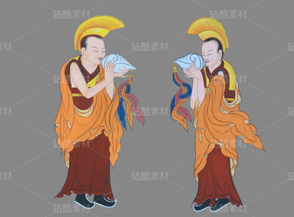 僧人持白海螺