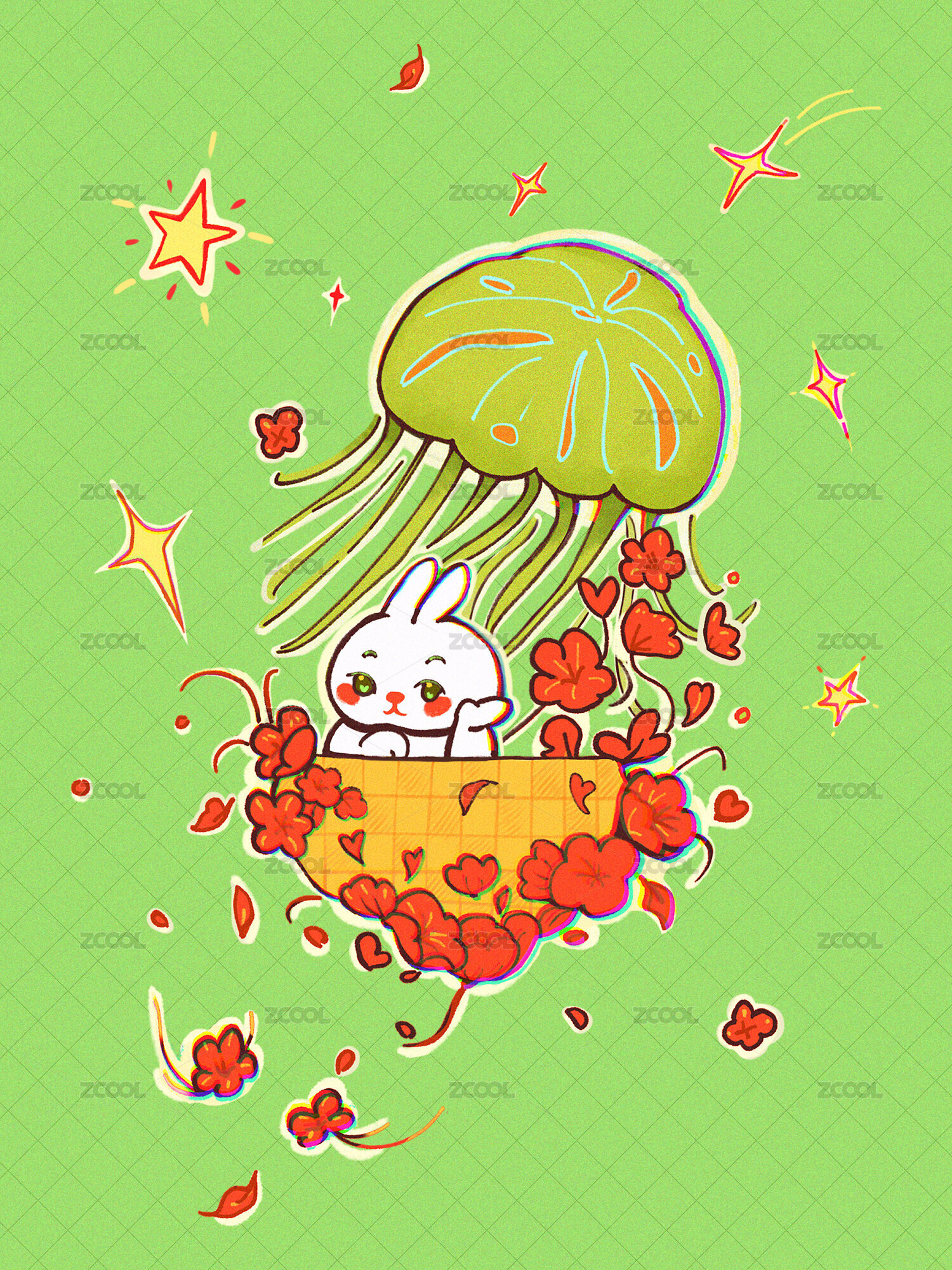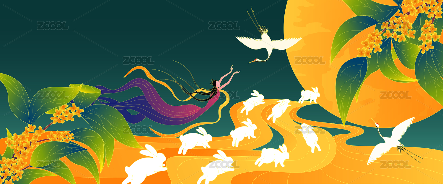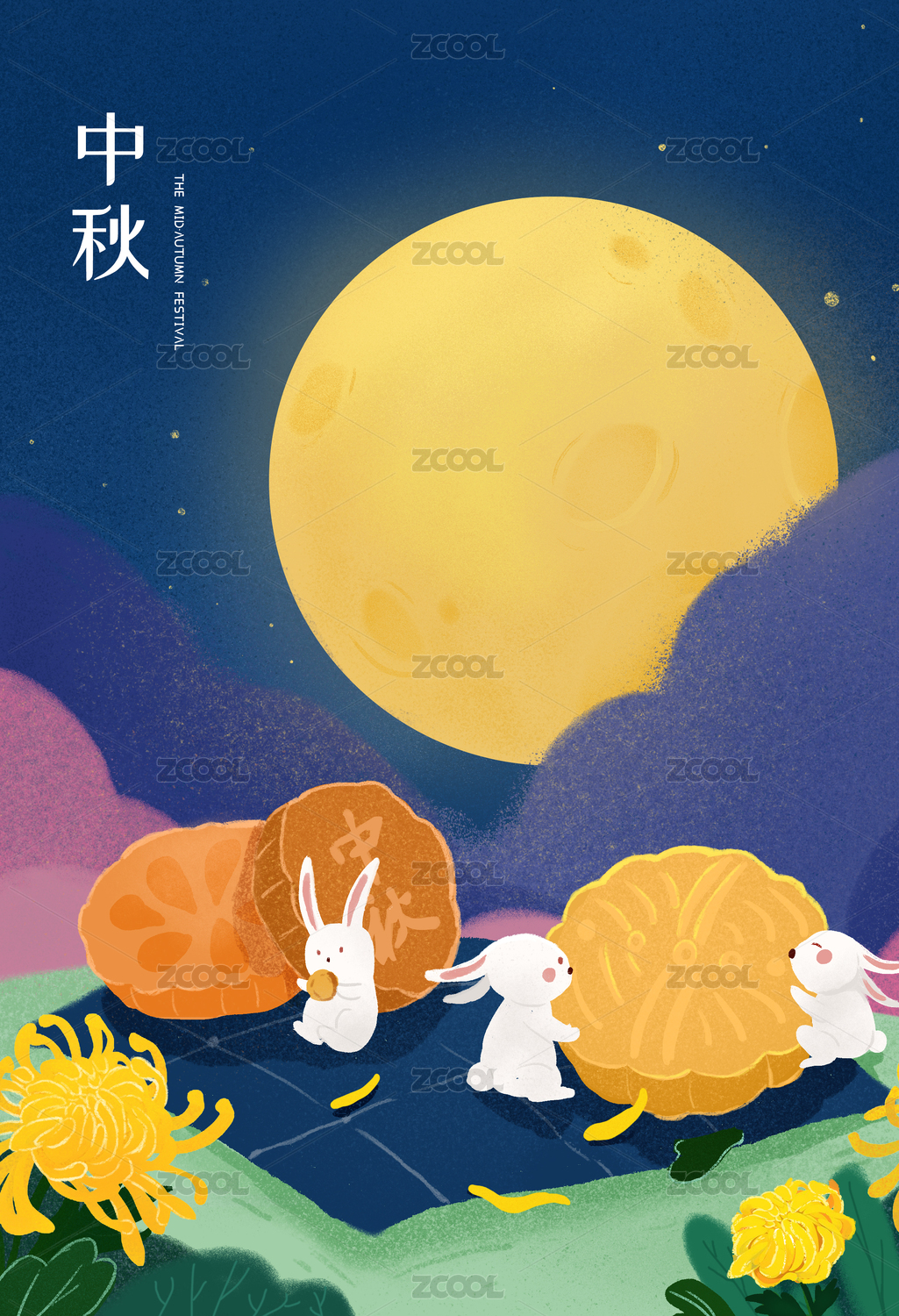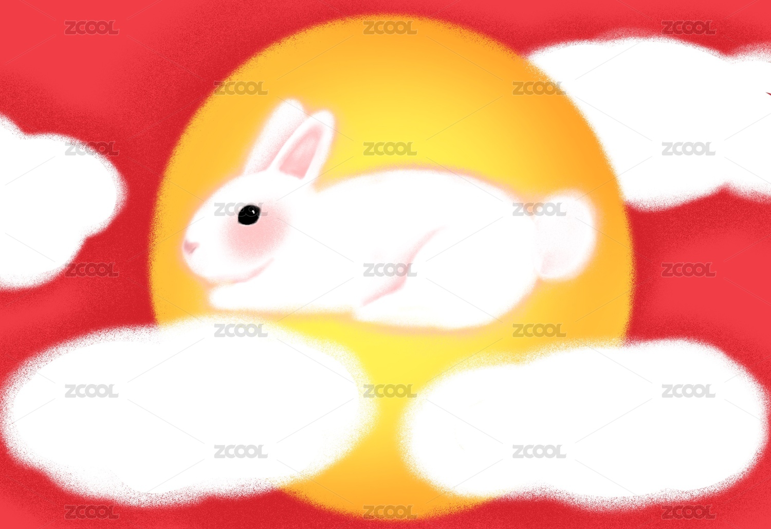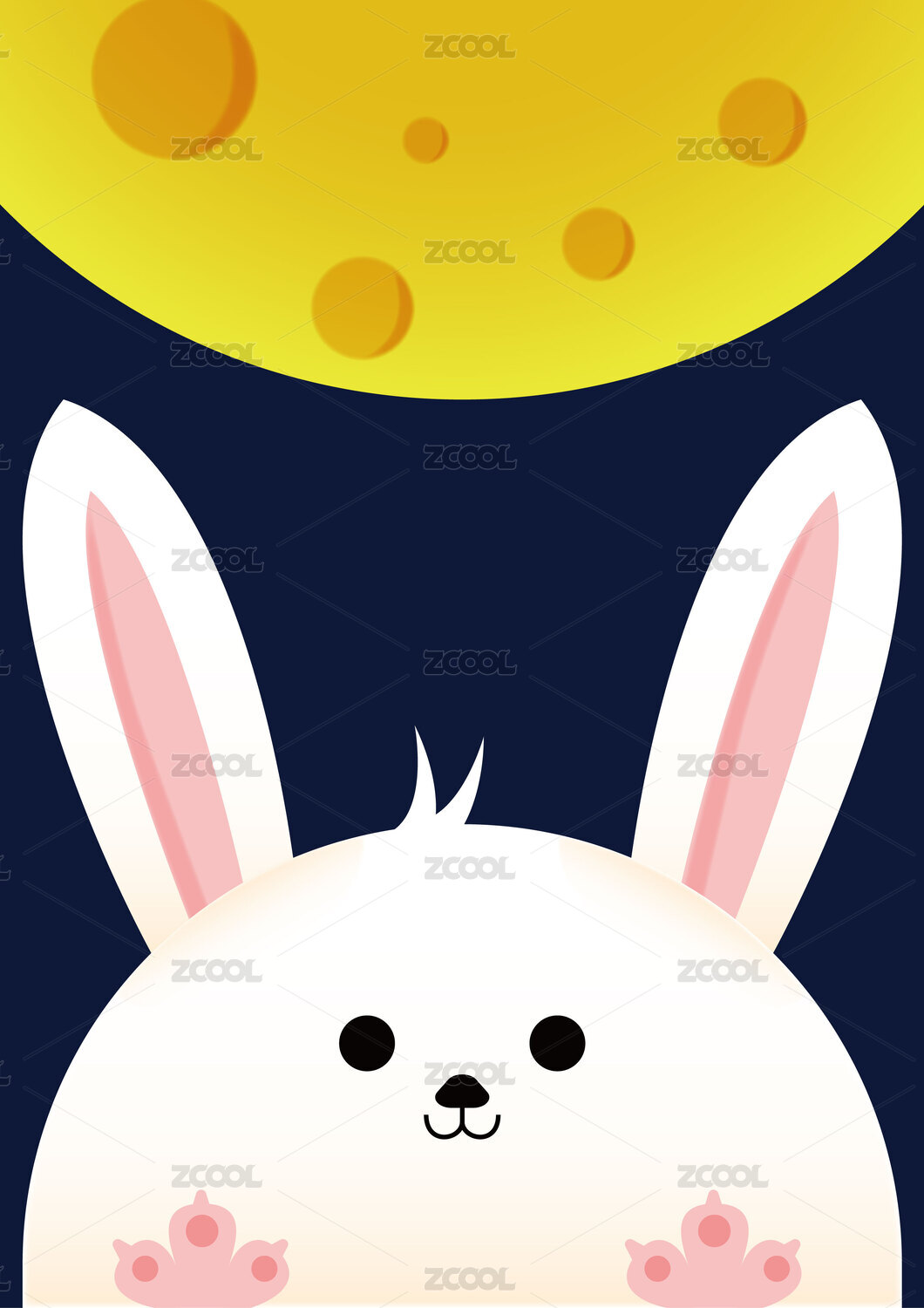 卡通手繪中秋節(jié)玉兔月亮插畫