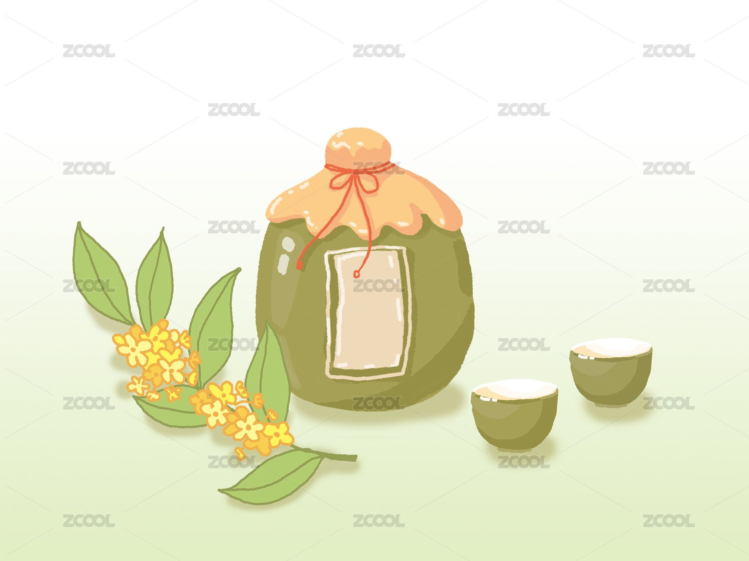 秋天桂花釀造的桂花酒手繪插畫 背景素材