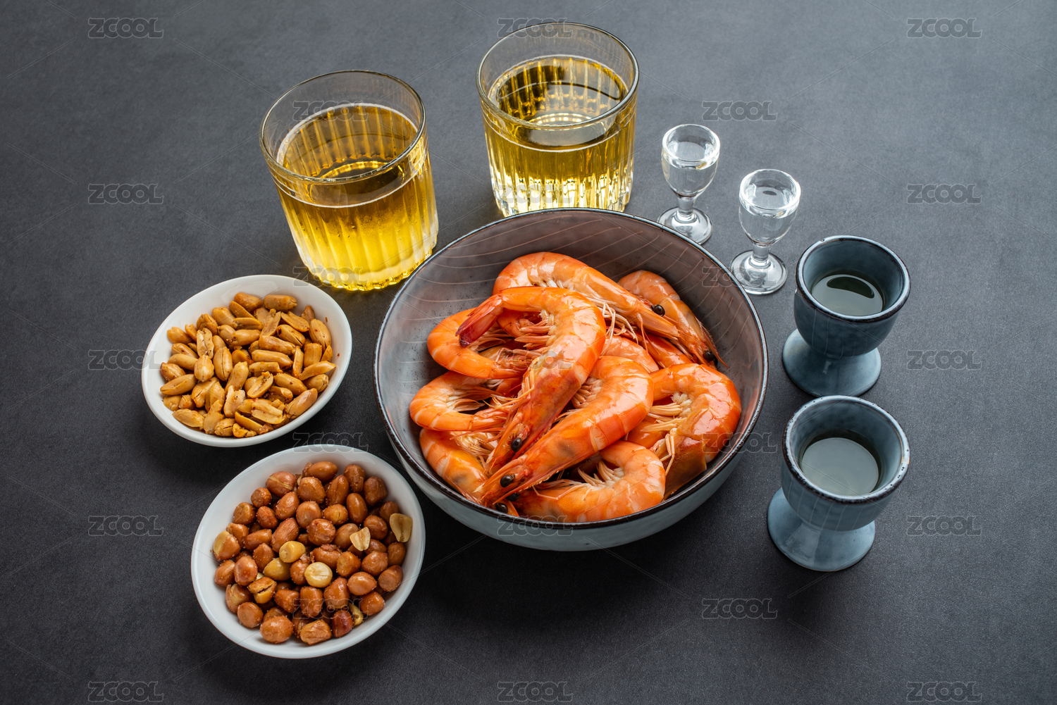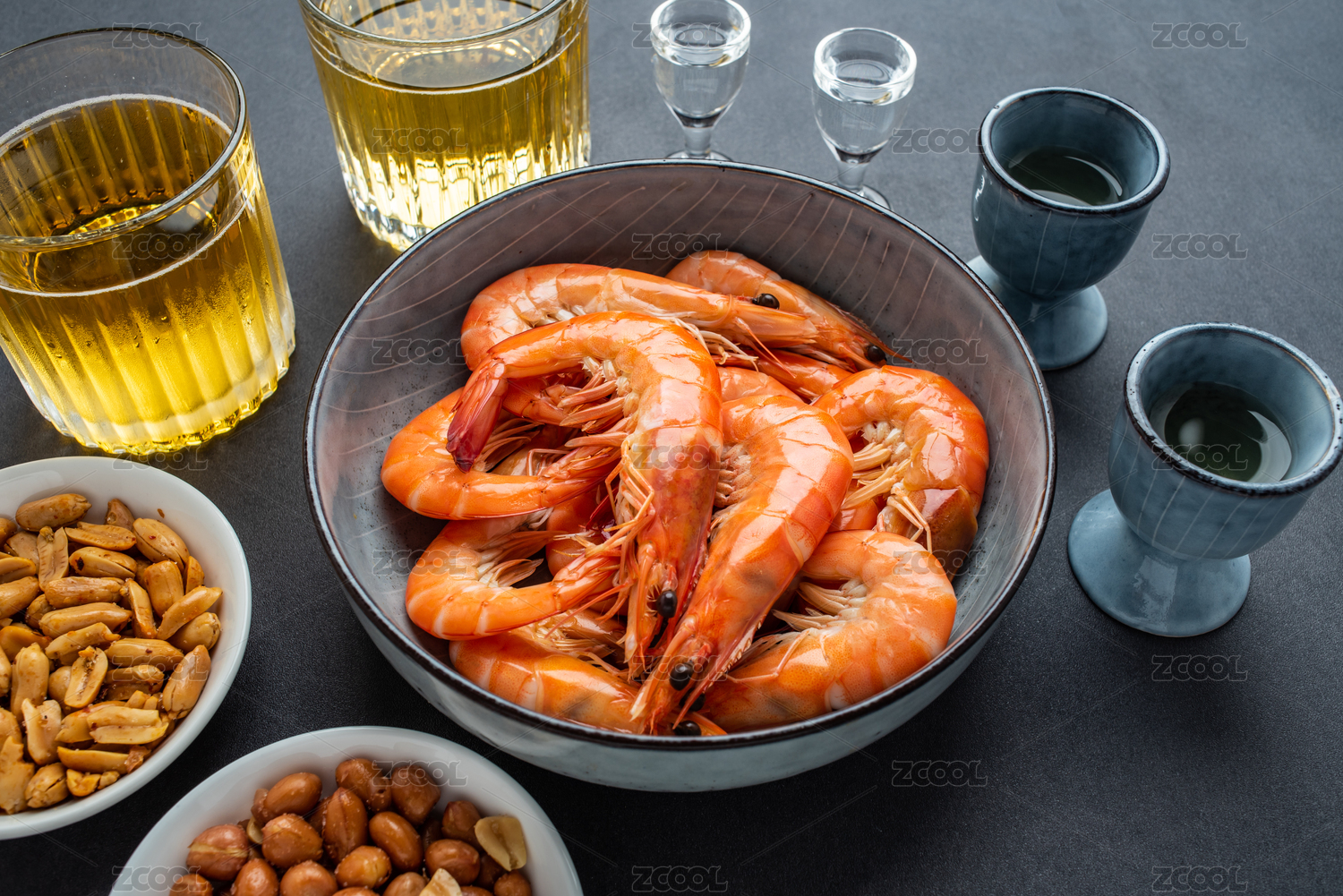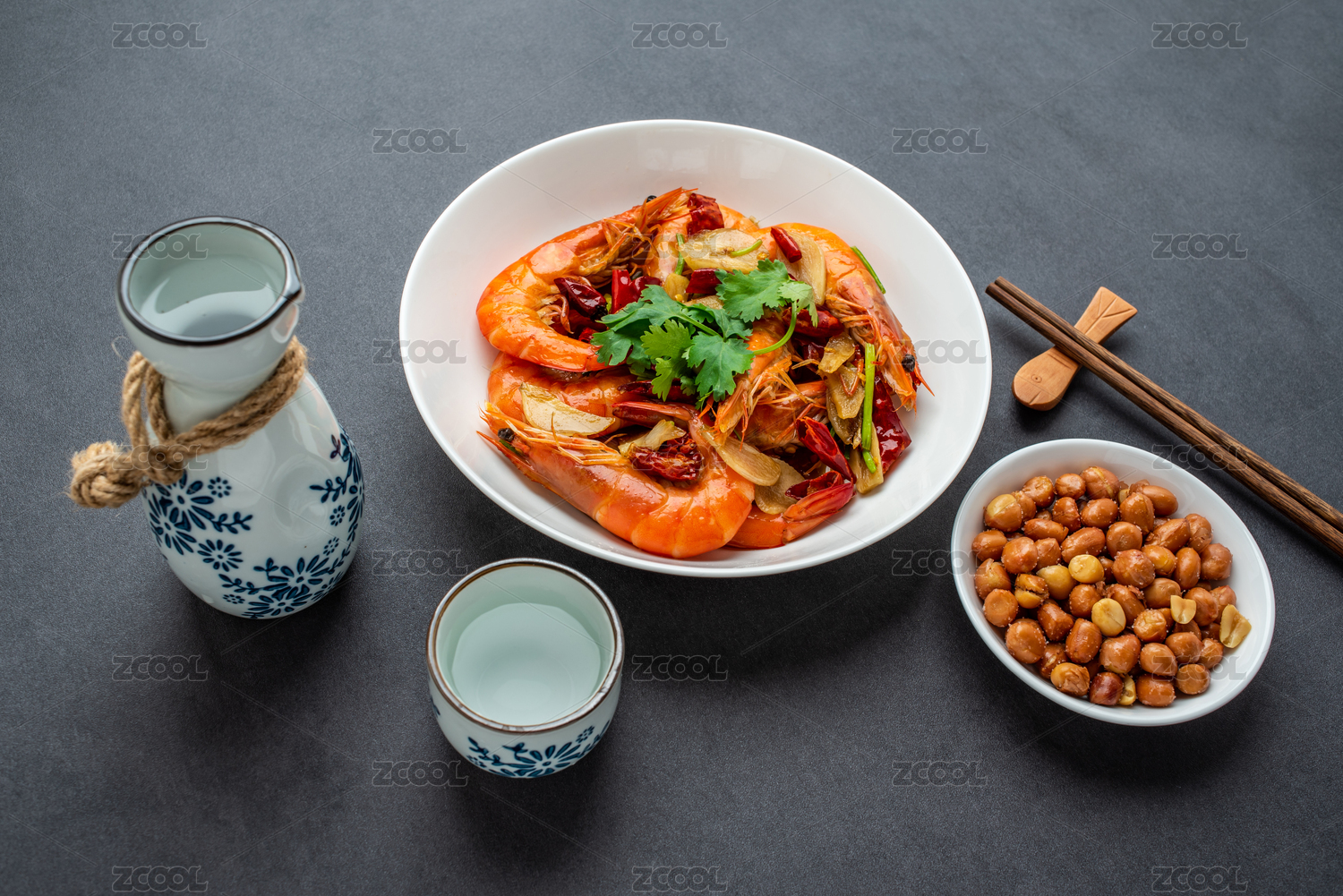 一杯清酒和一碟香辣蝦