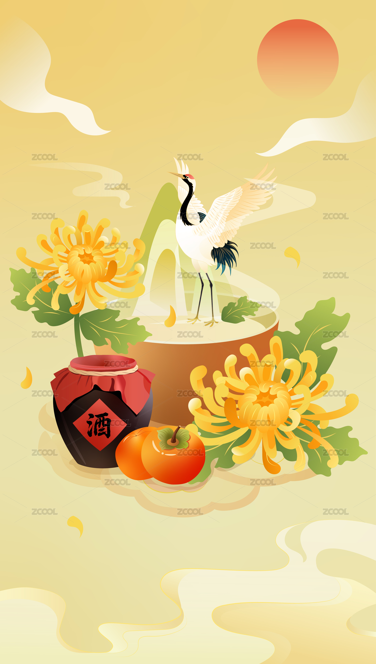 酒瓶和菊花組合插畫