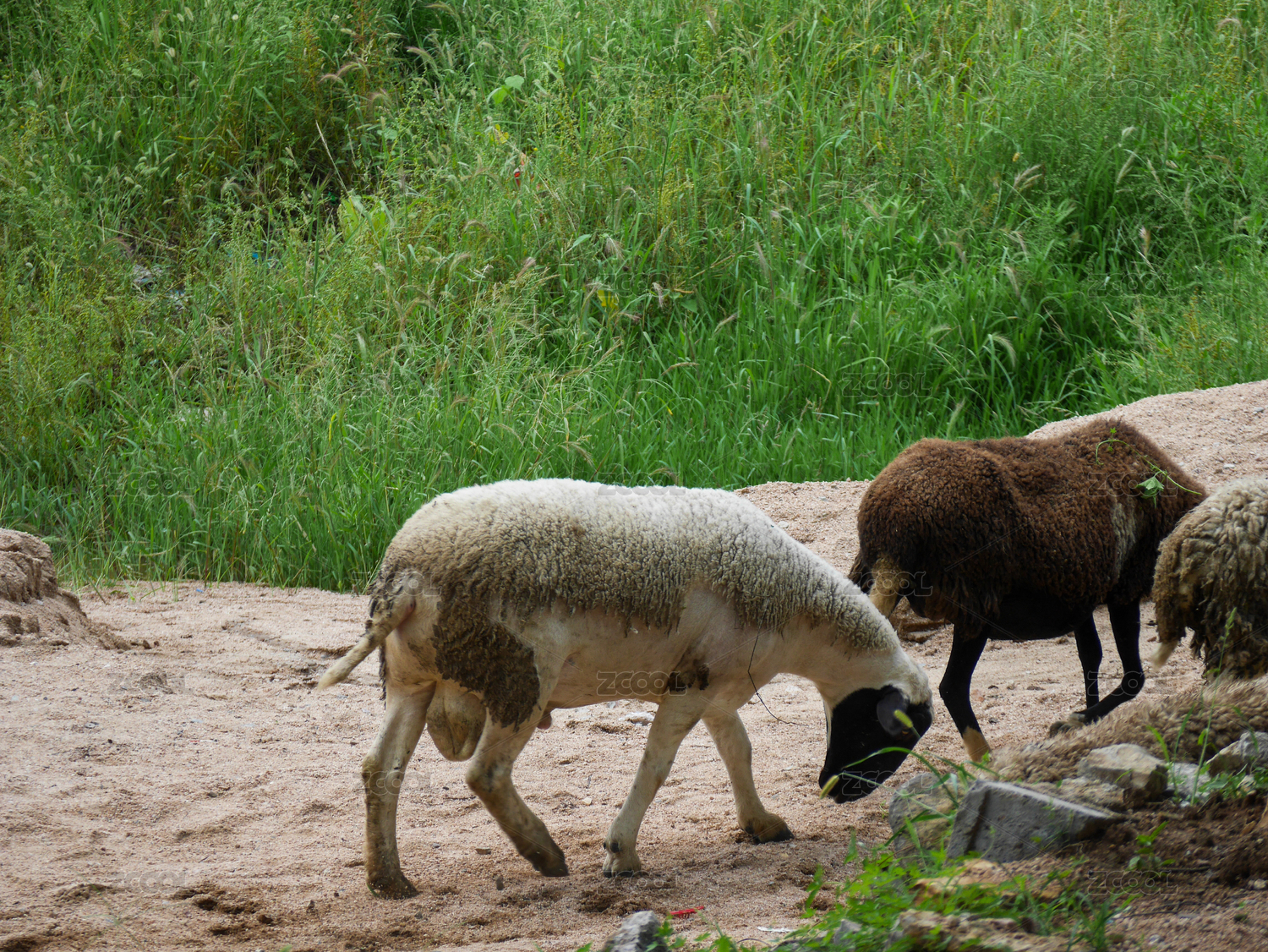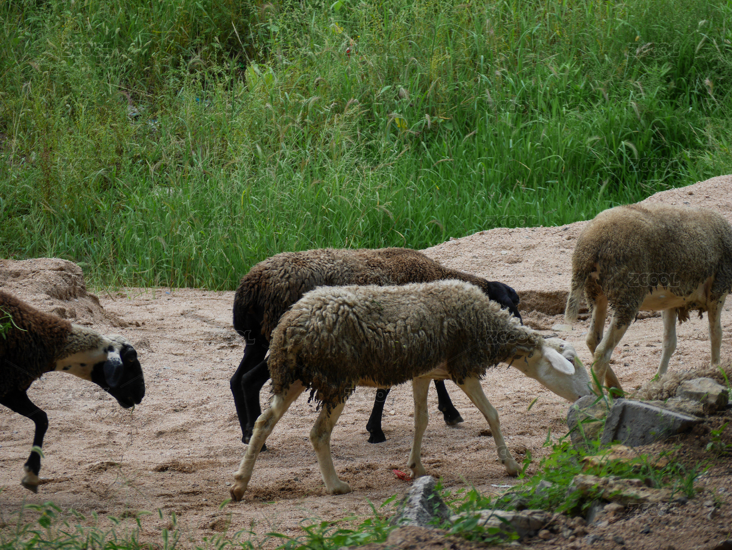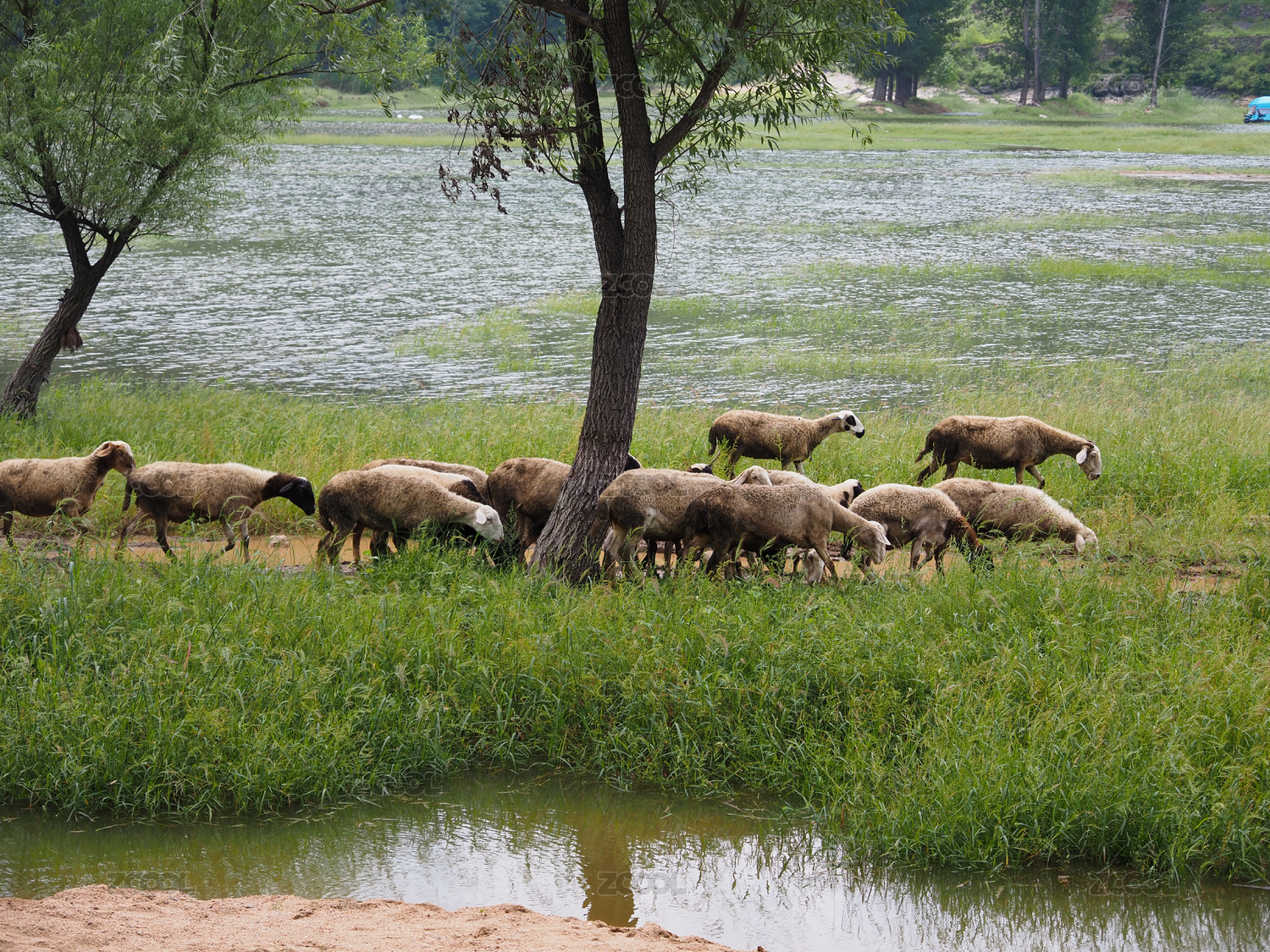 淄博沂源田莊水庫邊上悠閑吃草的綿羊群